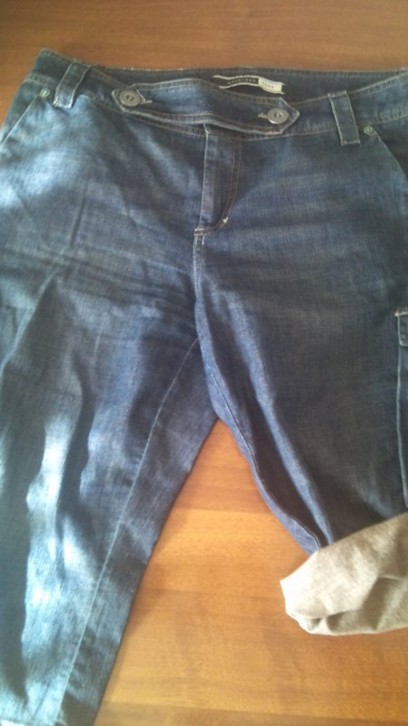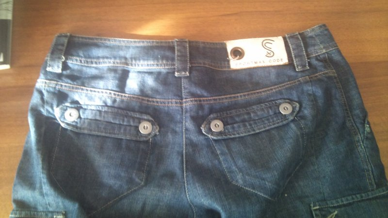 не плотная джинса, на лето, накладные карманы по бокам, бермуды, длина которых уместна и не в куростном городе, при желании можно подкатать и зафиксировать - получится длина шорт, лейбл с пирсингом.