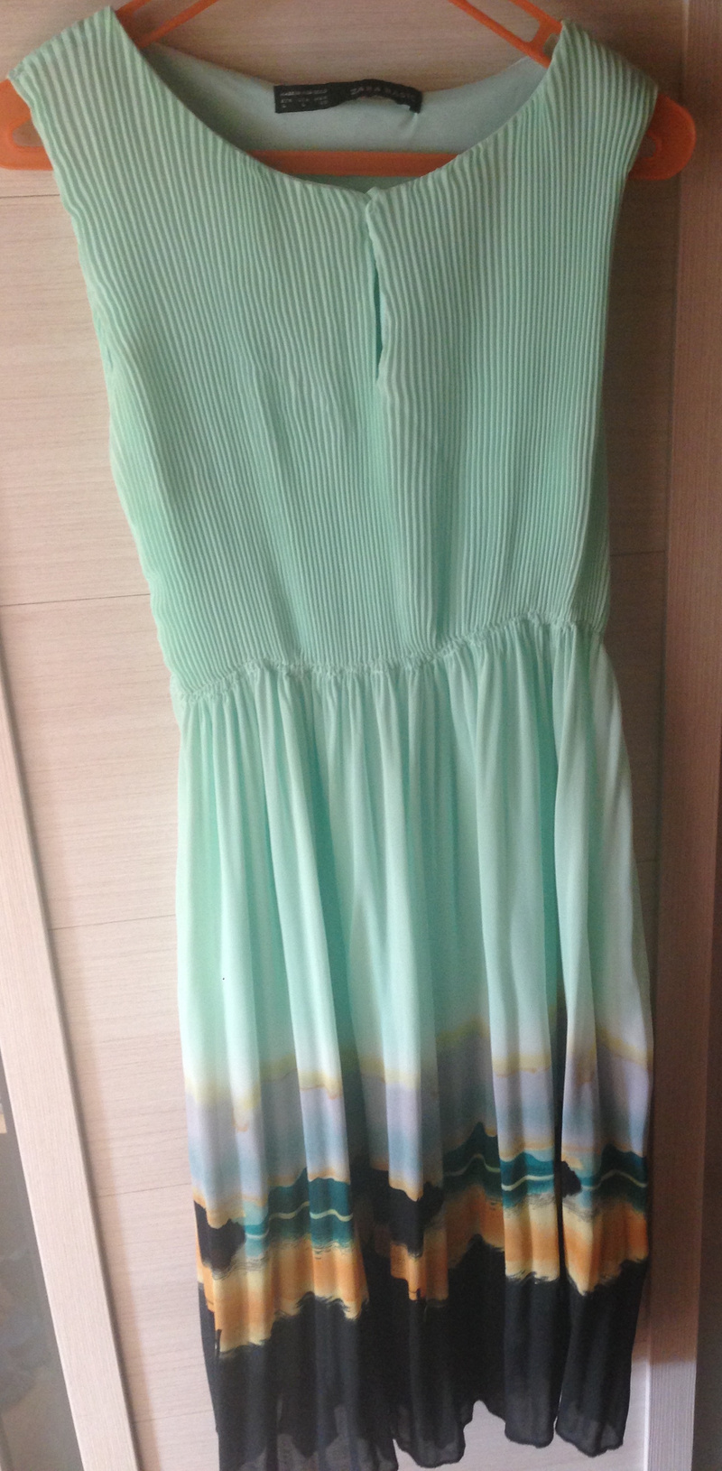 Цвет между мятным и зелёным, очень красивый.