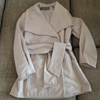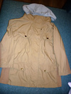 Ветровка песочного цвета (кэмэл), серый трикотажный капюшон.