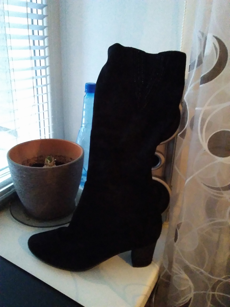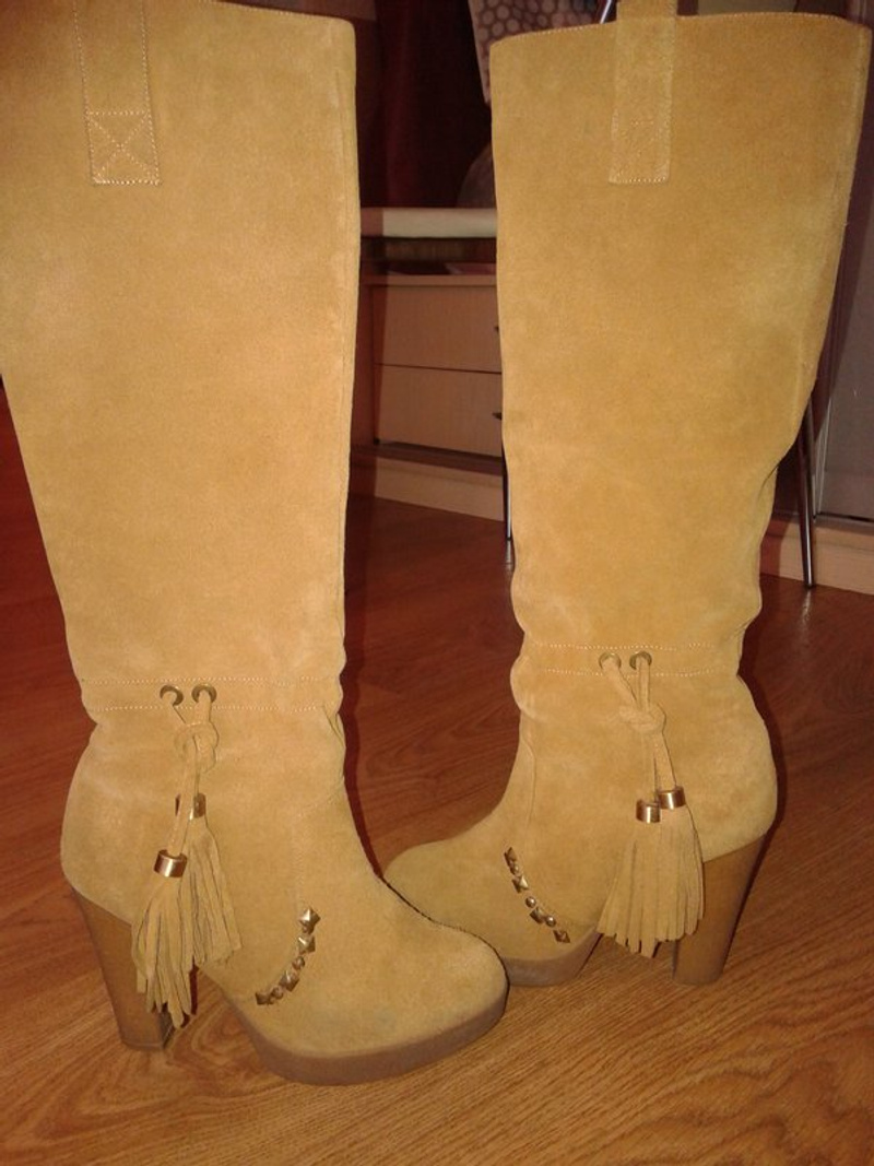 Сапоги кожаные, маркировка 40, покупались на размер 39, можно попробовать на 39,5-40, демисезон, состояние отличное. Новые набойки, каблуки без потертостей, царапин. Высота каблука 10 см