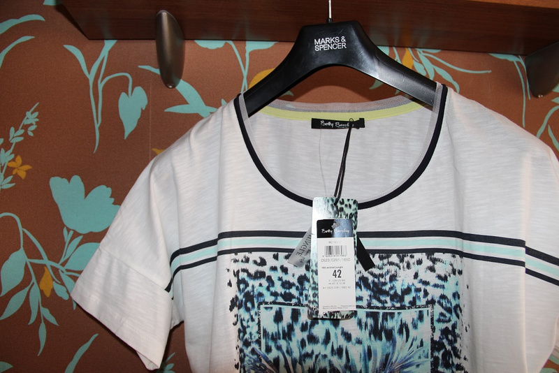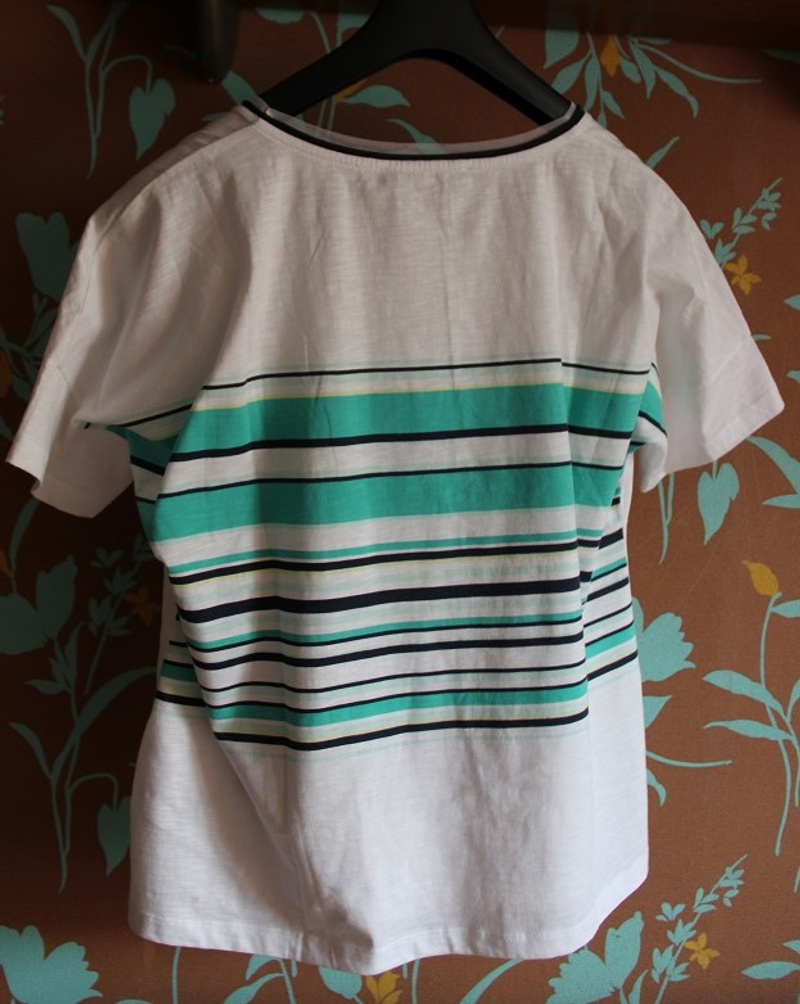 Новая Футболка BETTY BARCLAY ( Германия), оригинал размер 44 (FR) — 42 (DE), по размерной сетке идет на 50, но мне кажется большемерит на наш 52-54. 100 хлопок. Принт с серебряным напылением, полосатая спинка, горловина окантована стандартно +сетка. очень необычно и красиво смотрится. Крой чуть приталенный. с франц Vente .1100 руб