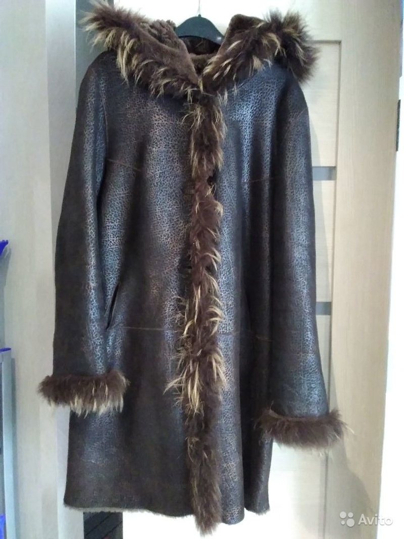 Двухсторонняя дубленка, цвет шоколад, золотистый блеск, с капюшоном.