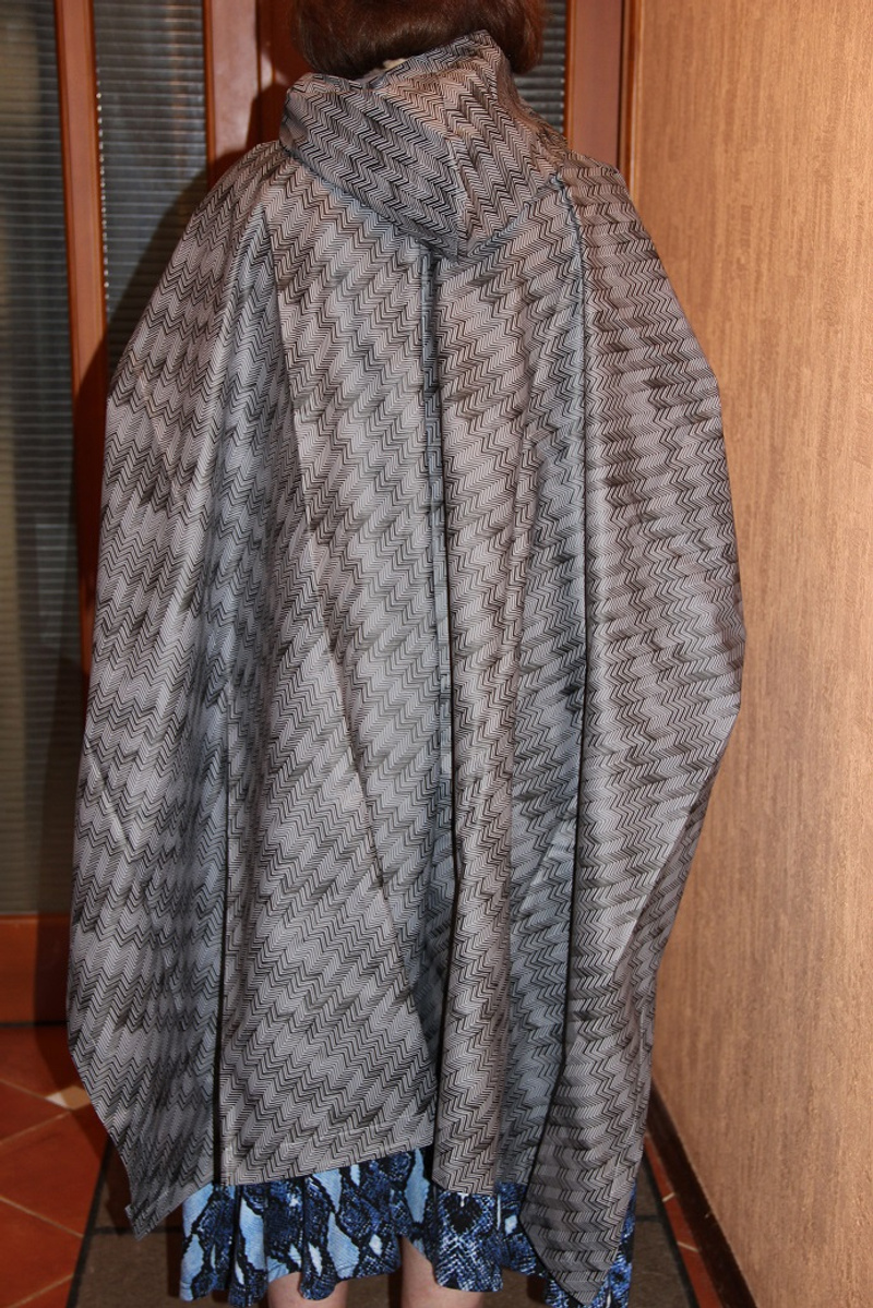 Можно носить с открытой грудью, заправляя внутрь палантин, или же полностью застегнутым. Есть крючок-застежка на горловине.