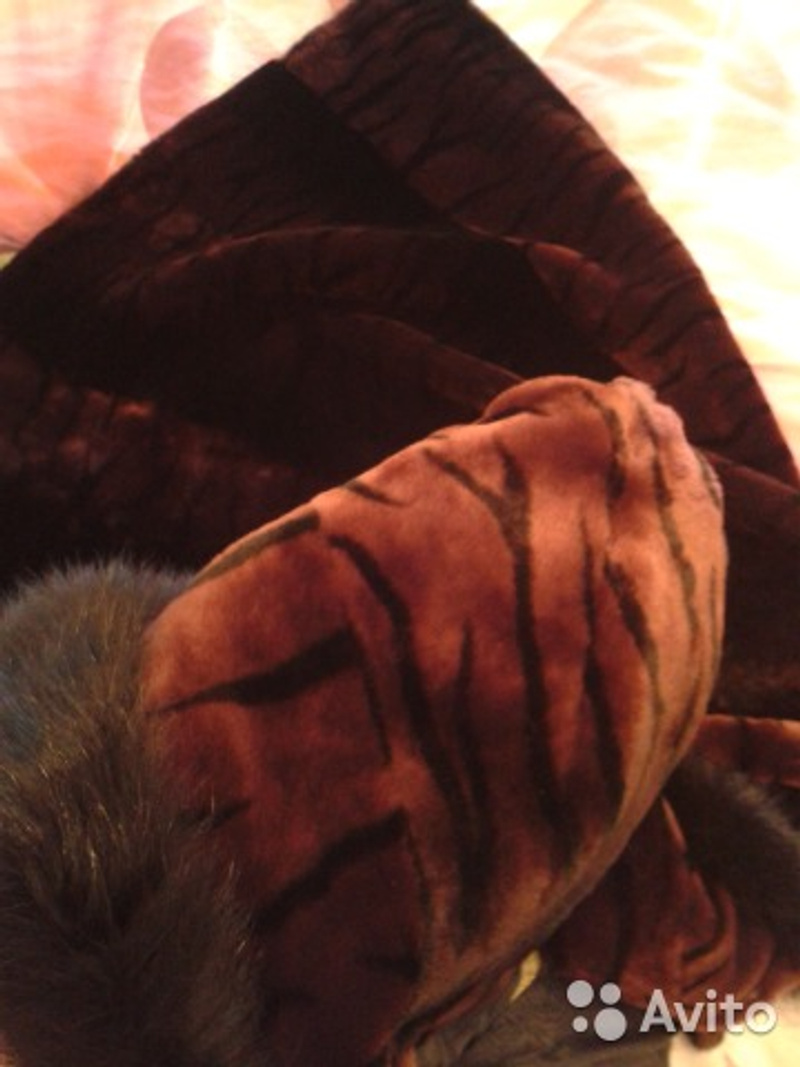 Шуба мутон, размер 46-48, можно попробовать померить на 50, на высокий рост (мой на фото 174см), цвет в оригинале назывался "тигр на гранате" - тигровые полоски на темно-бордовом, сфотографировать цвет нормально не получилось, мех играет на свету. Красивый капюшон, отороченный черным мехом песца. Шуба в хорошем состоянии, есть небольшие потертости в самом низу рукава, это все из недостатков. Заберите кому нужно за кило яблок)))))