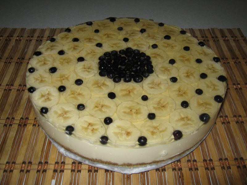 Сегодня сделала сынульке на крещениесупербанановый чизкейк: