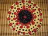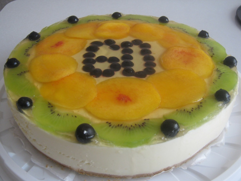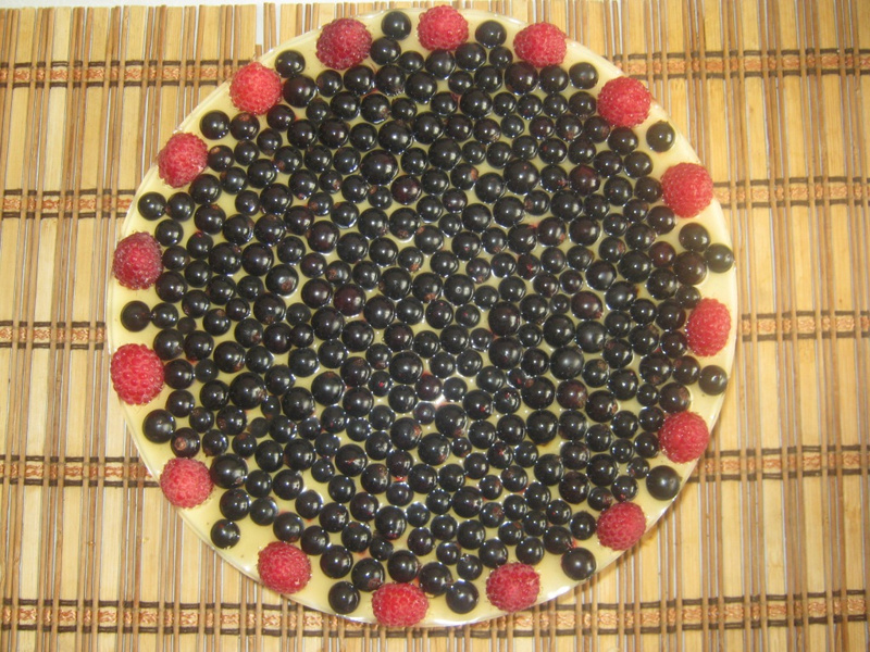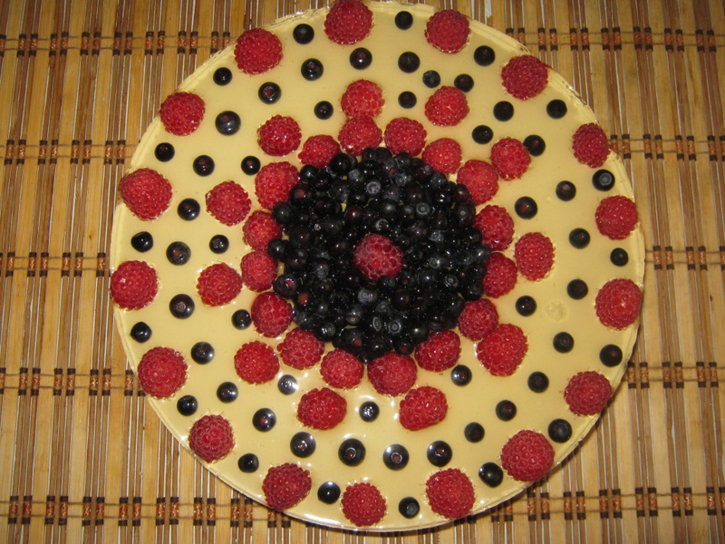 3 слой - достать застывшие слои, выложить сверху фрукты, сверху залить сиропом (смешать любой сок с желатином в пропорциях 1:1) и еще раз в холодильник