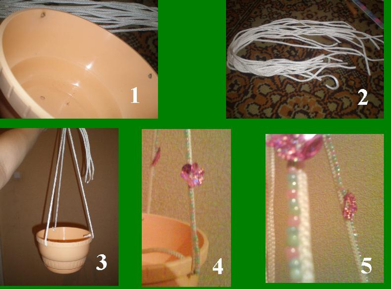 Вчера купила 4 Кашпо 27 л. пластмаса с крепящейся подставкой. И Канат декоративный 8мм - 2 метра и 6 мм - 6 метров. Думаю как подвесить горшочки, может кто поделиться опытом? Просто в инете ничего не нашла!