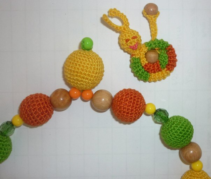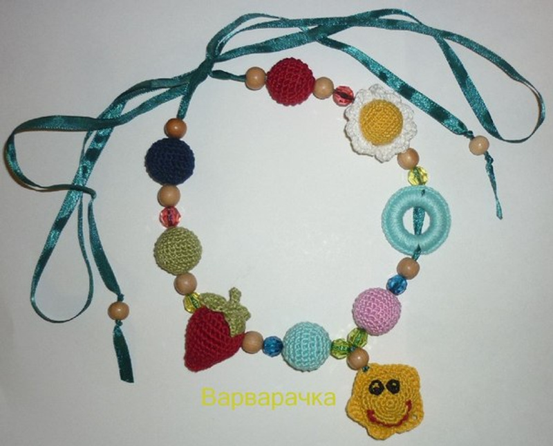Слингобусы незаменимый аксессуар для активной мамы. Это не просто оригинальное модное украшение, которое помогает мамочкам выглядеть эффектно на прогулках с малышами, это ещё один маленький помощник в таком непростом деле как воспитание маленького человека. Переоценить эту игрушку довольно сложно. Слингобусы приходят на помощь маме в самых разных ситуациях: на прогулке, в поездках, в магазине (чтобы ребёнок не хватал товары с прилавков), в поликлиниках (чтобы скоротать время ожидания приёма у врача), в самолете,в любых путешествиях.наконец – когда маме просто нужно ответить на звонок телефона, а непоседливый малыш требует внимания.бусы способствуют развитию мелкой моторики и речи, зрения и кожной чувствительности ребенка, помогают ему научиться координировать движения и манипулировать предметами разной формы и величины. Слингобусы спасут маму от щипков, царапаний, попыток повиснуть на цепочке, наматывания волос, растягивания одежды и других неудобств во время кормления.