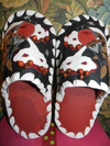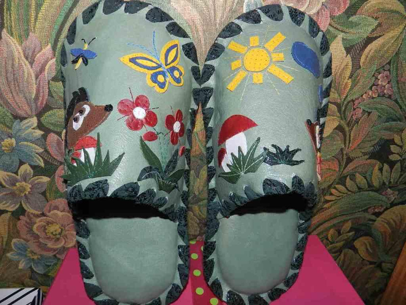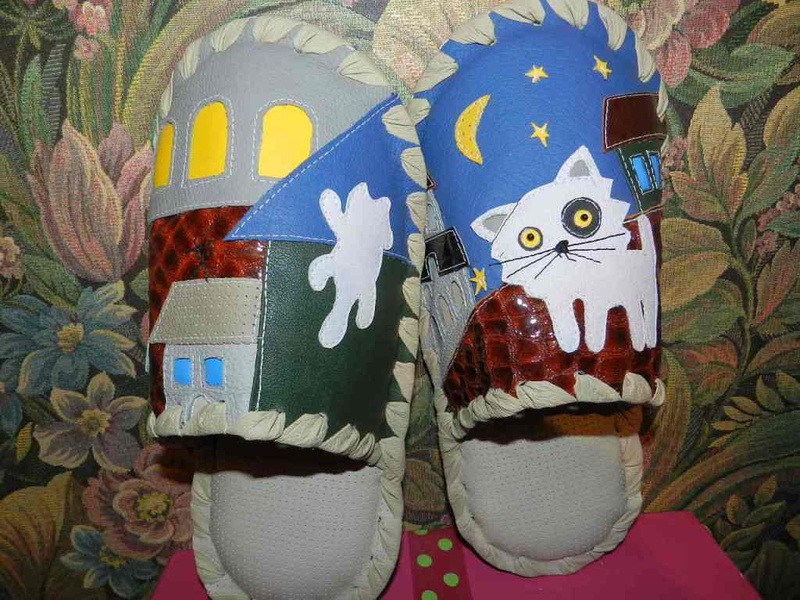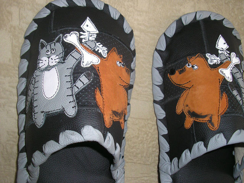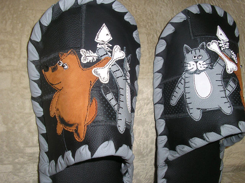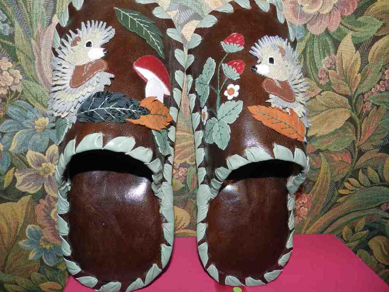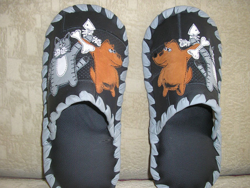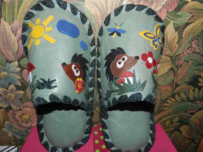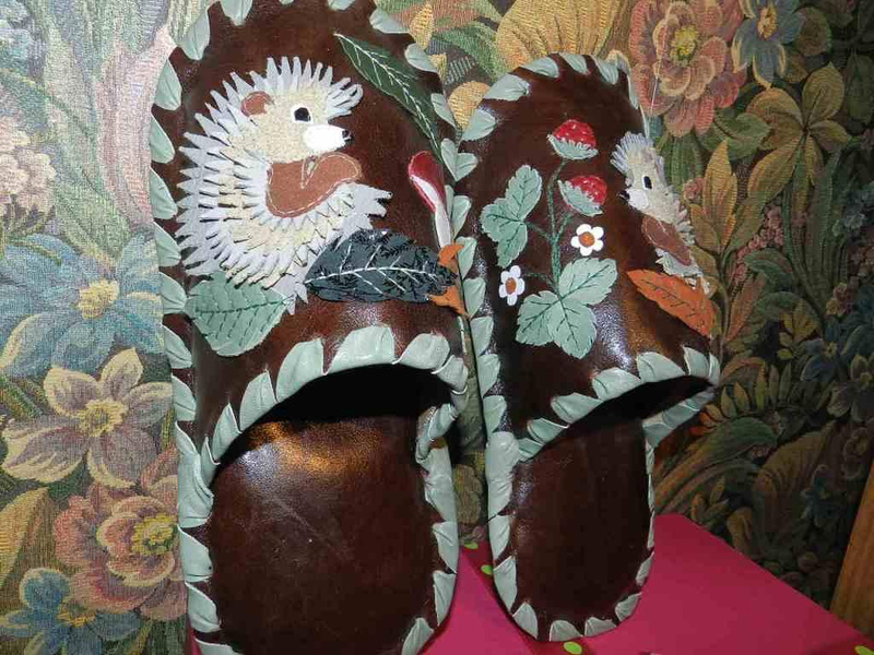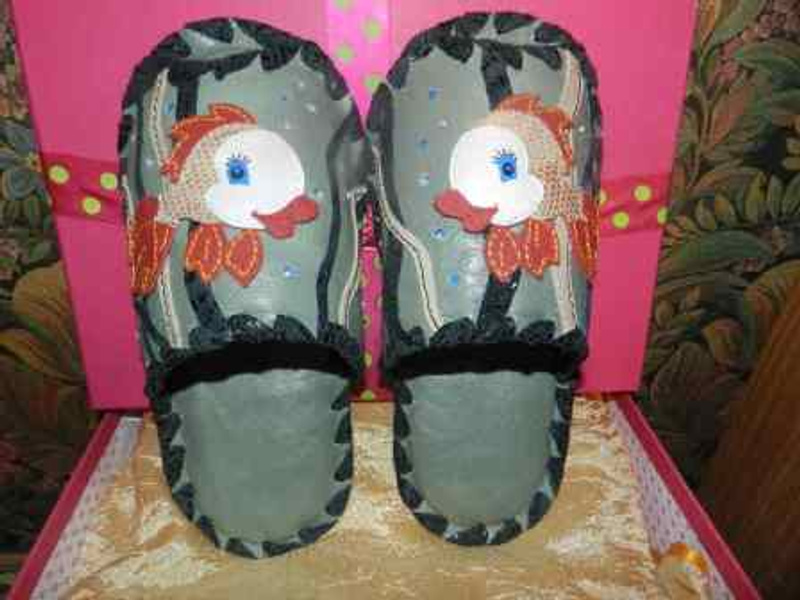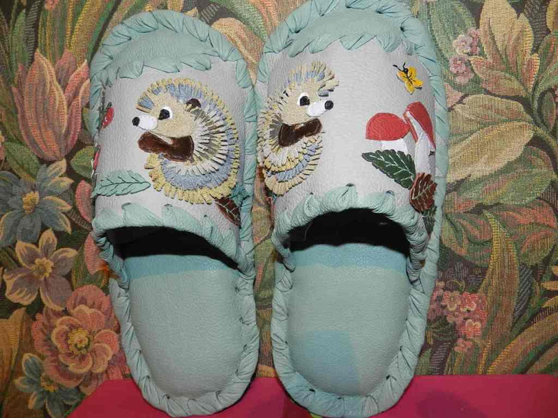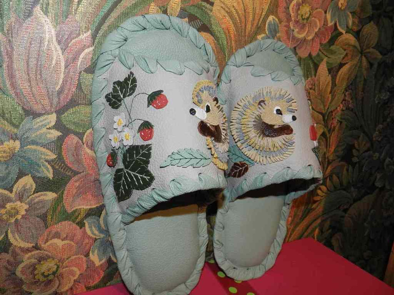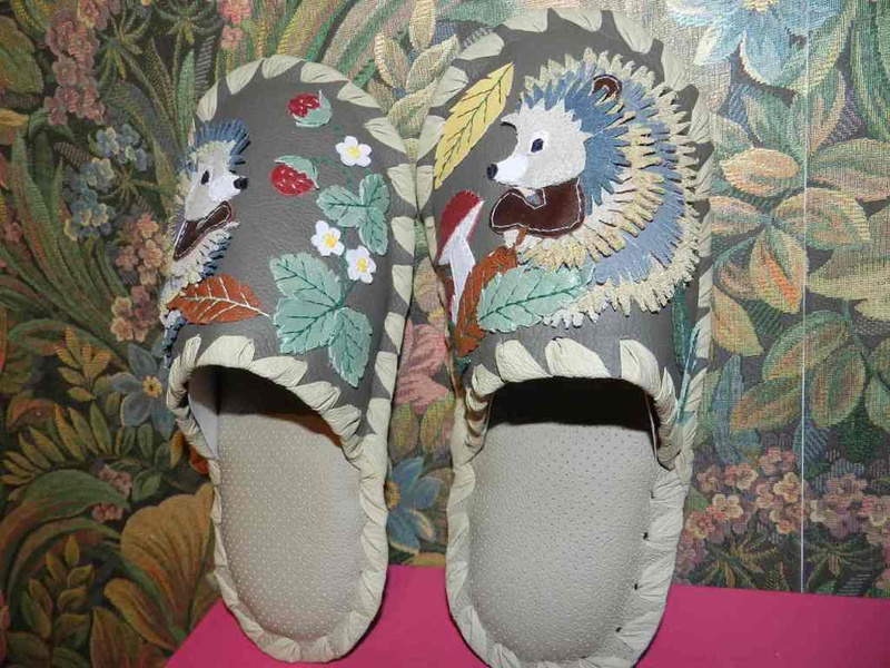 Заказать можно. Стоимость 1т.р. На предыдущих фотографиях были мужские тапочки с ежиками. А так выглядят женские.Ответ на сообщение Re: Комнатные тапочки из натуральной кожи. пользователя Елёнушк@