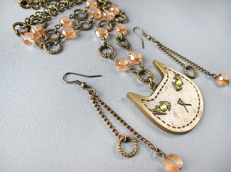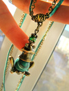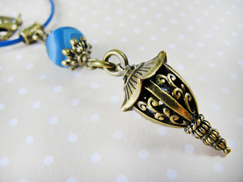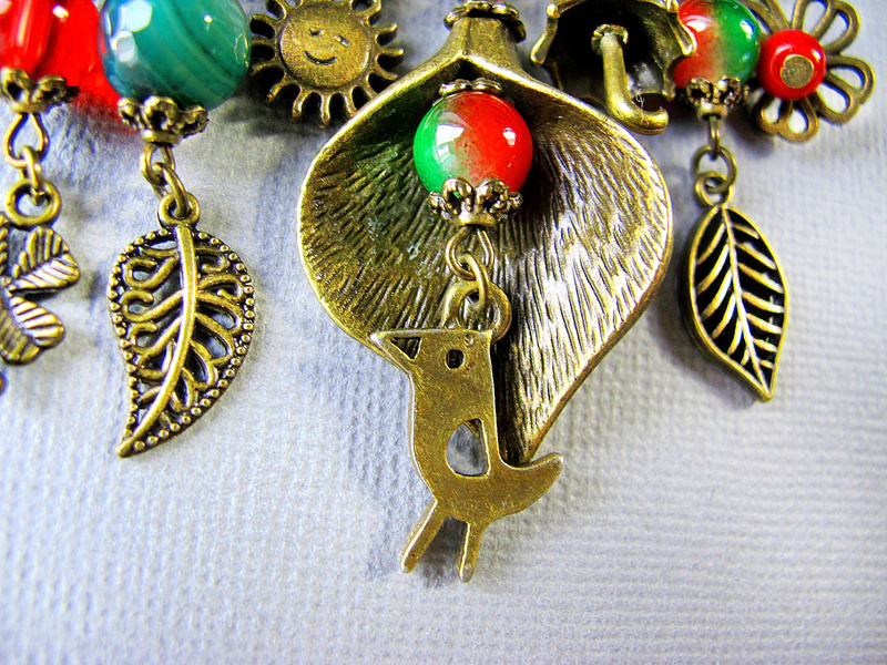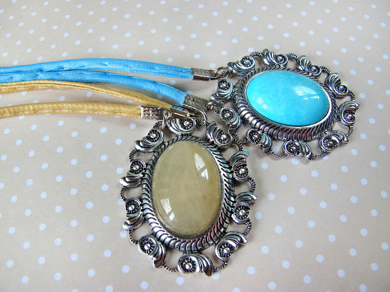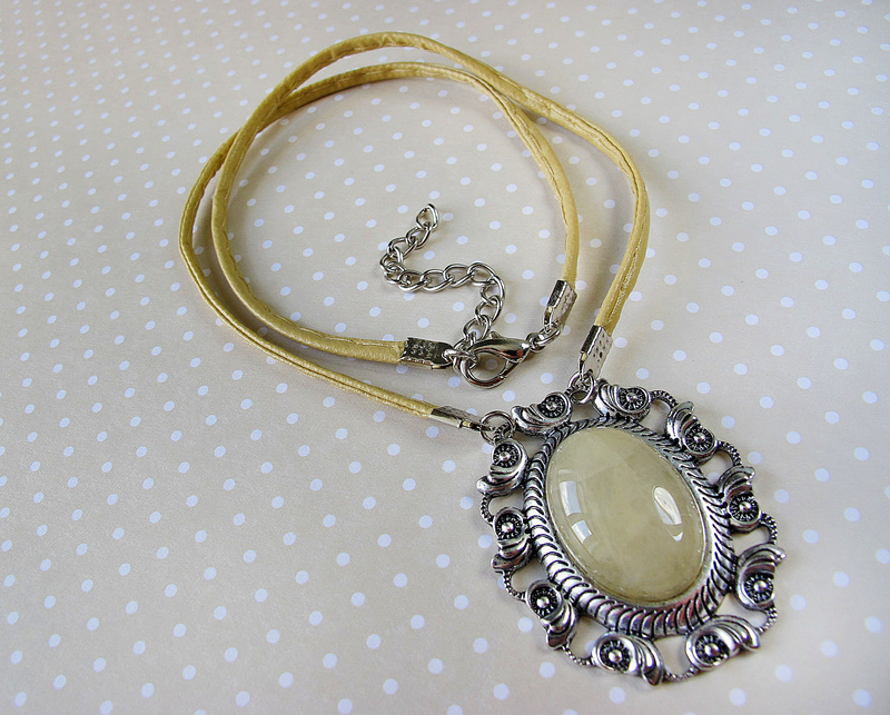 Колье-кулон изготовлен на основе фурнитуры под античную бронзу.