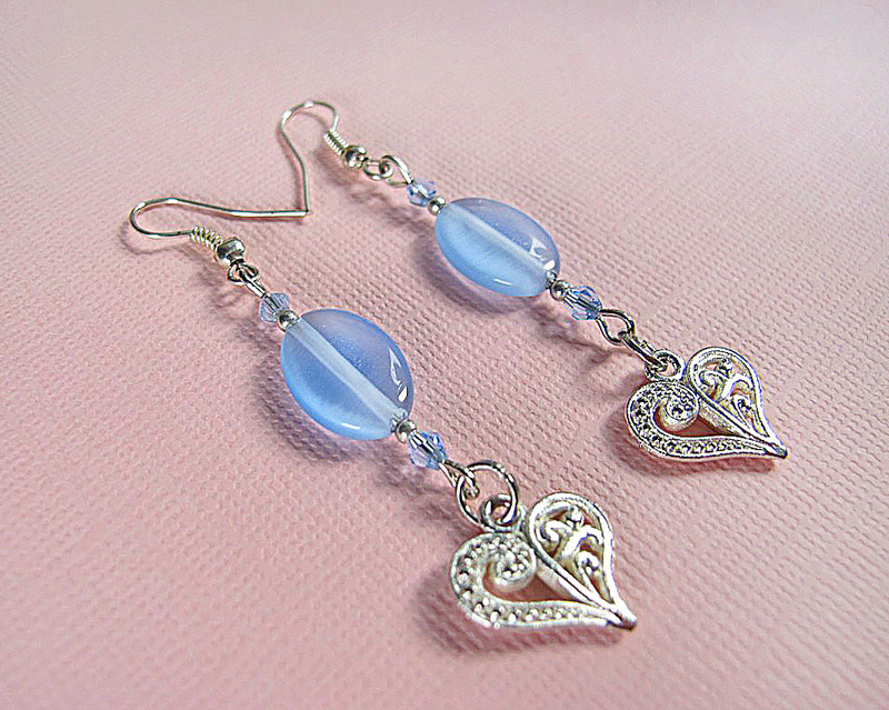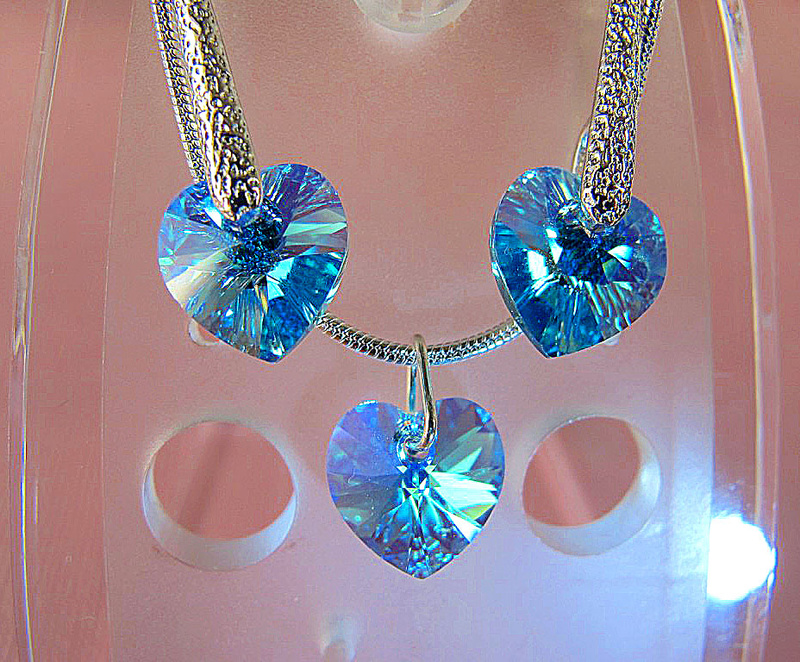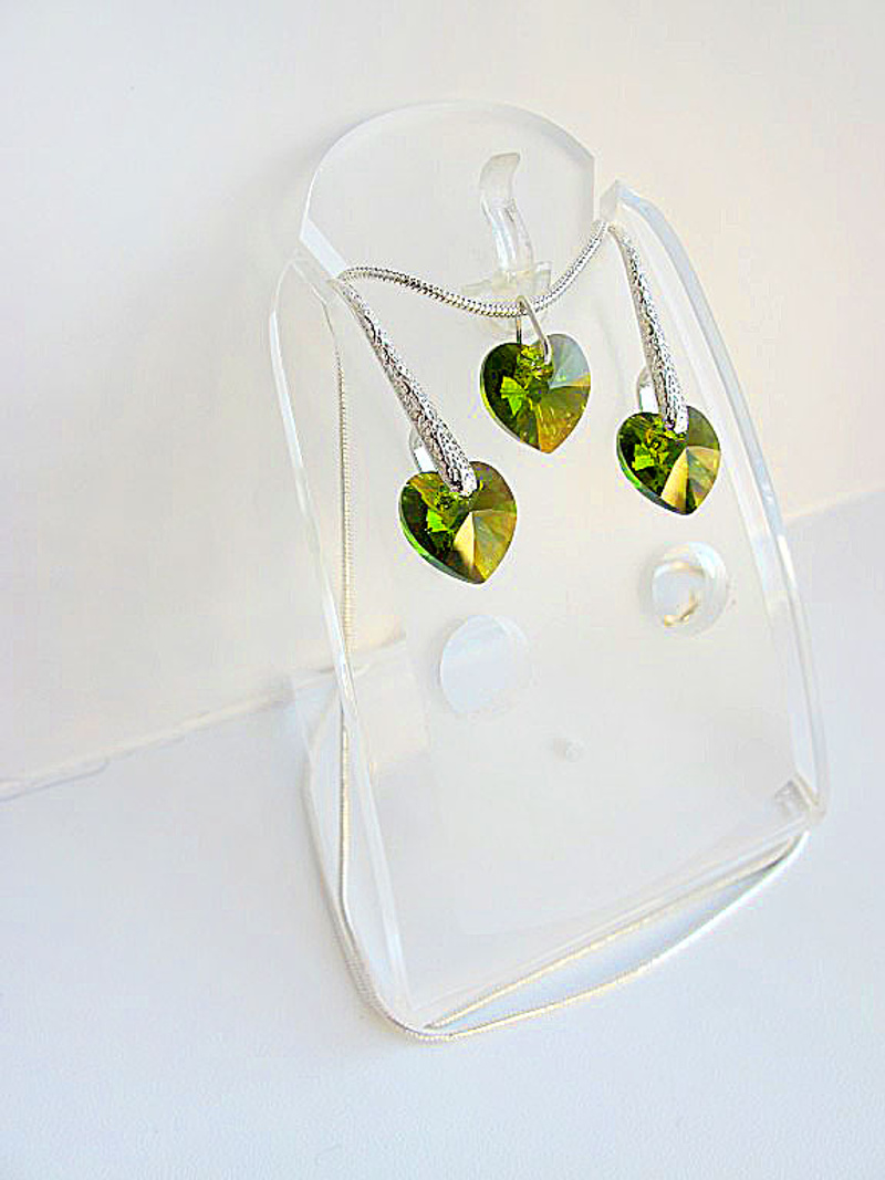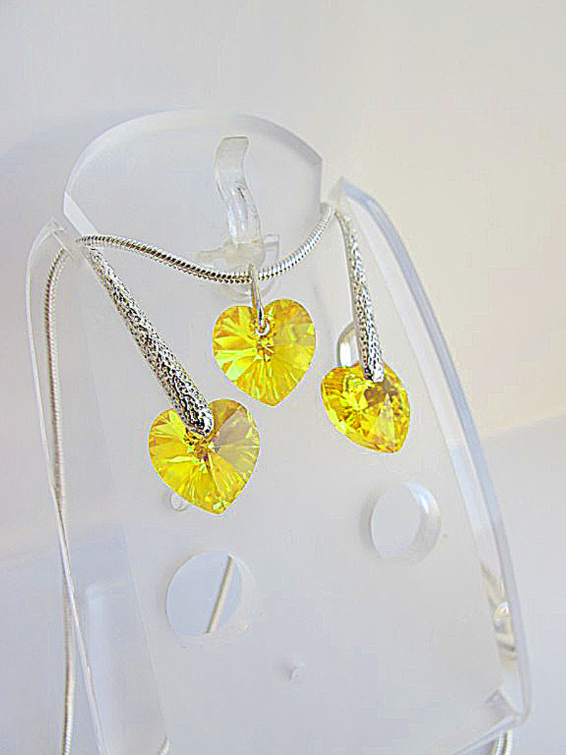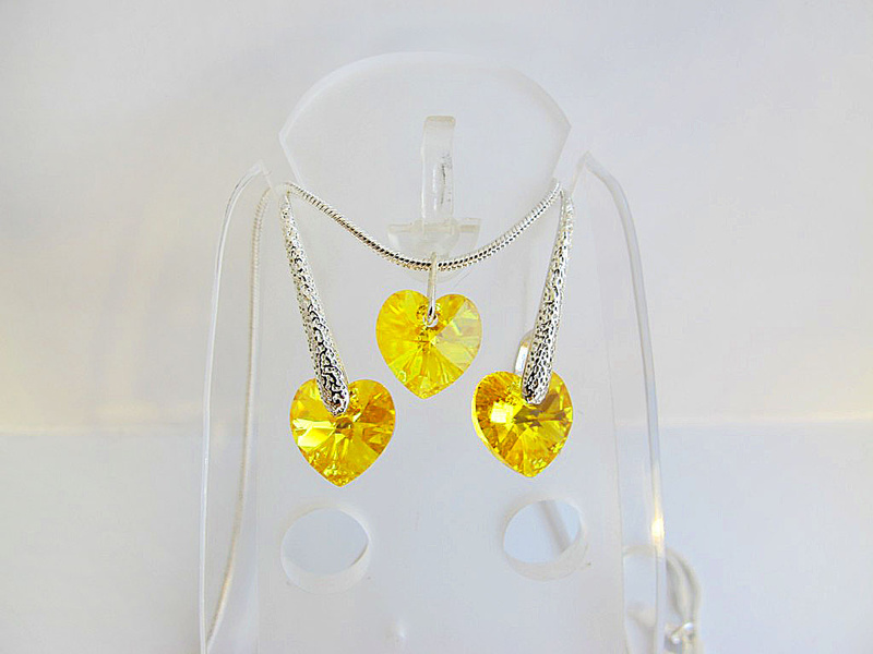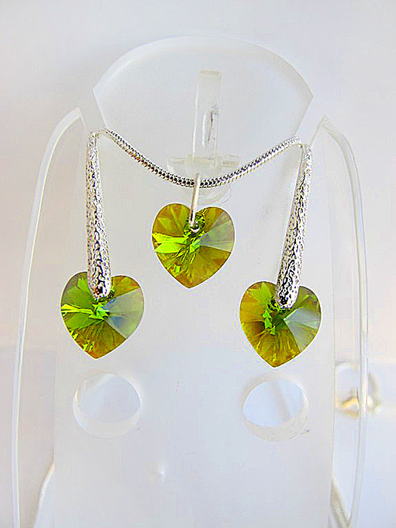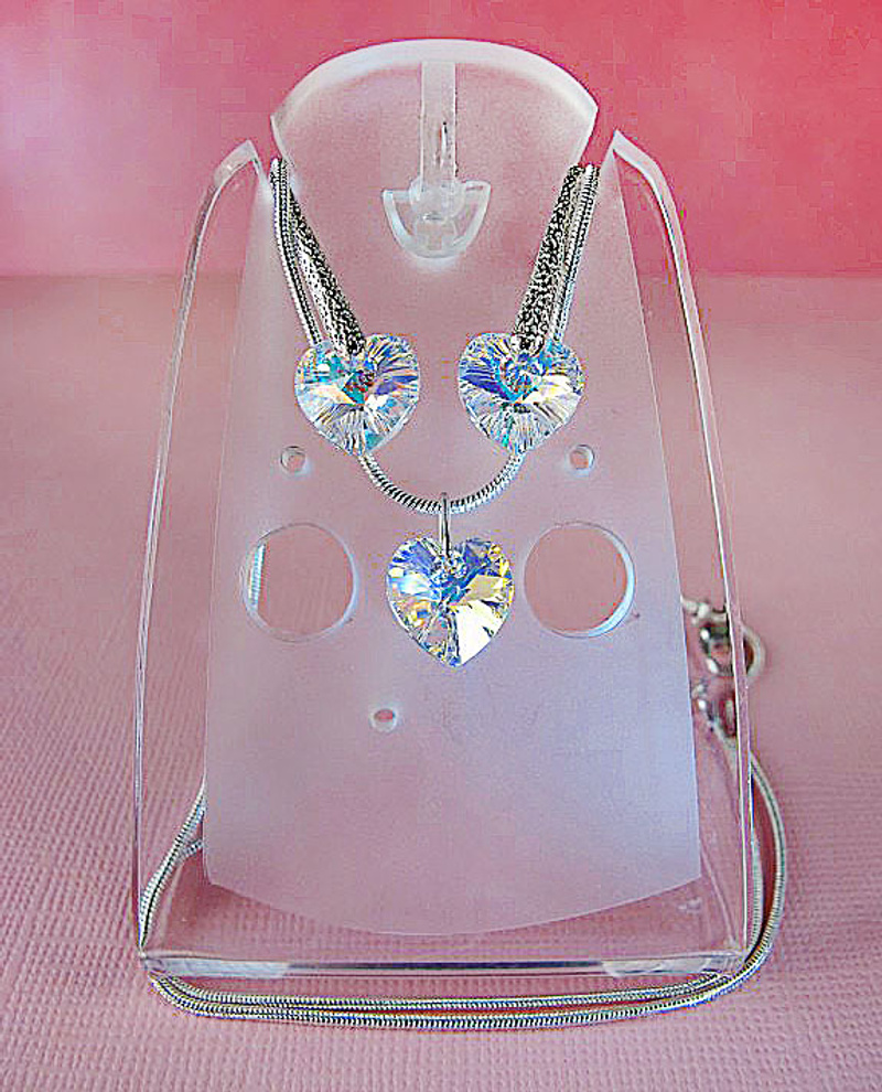 серьги и кулон из оригинальных кристаллов SWAROVSKI в форме сердечек