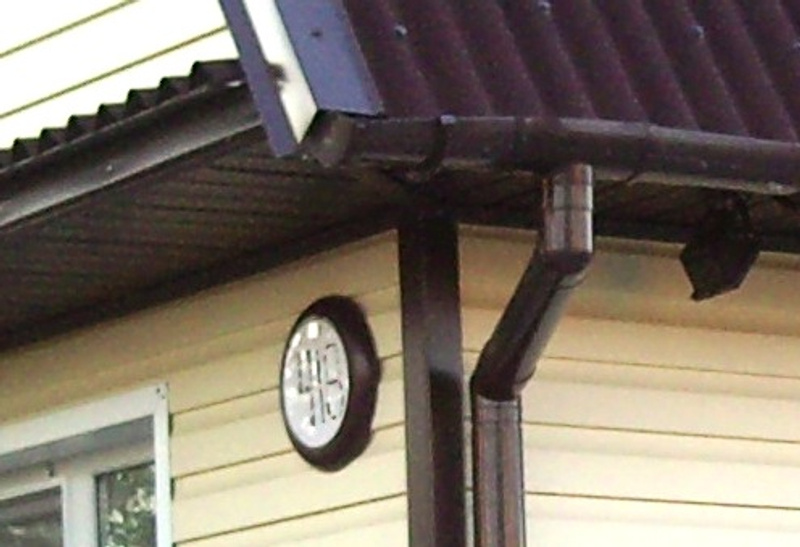 Висит вот уже четыре года-зимой и летом,ничего не отклеилось,только треснула пластмасса ободка в одном месте-видимо,от холода.Но издалека,с улицы,это незаметно