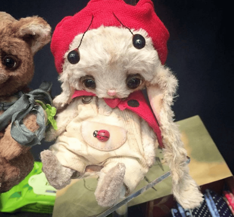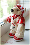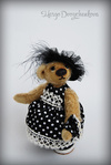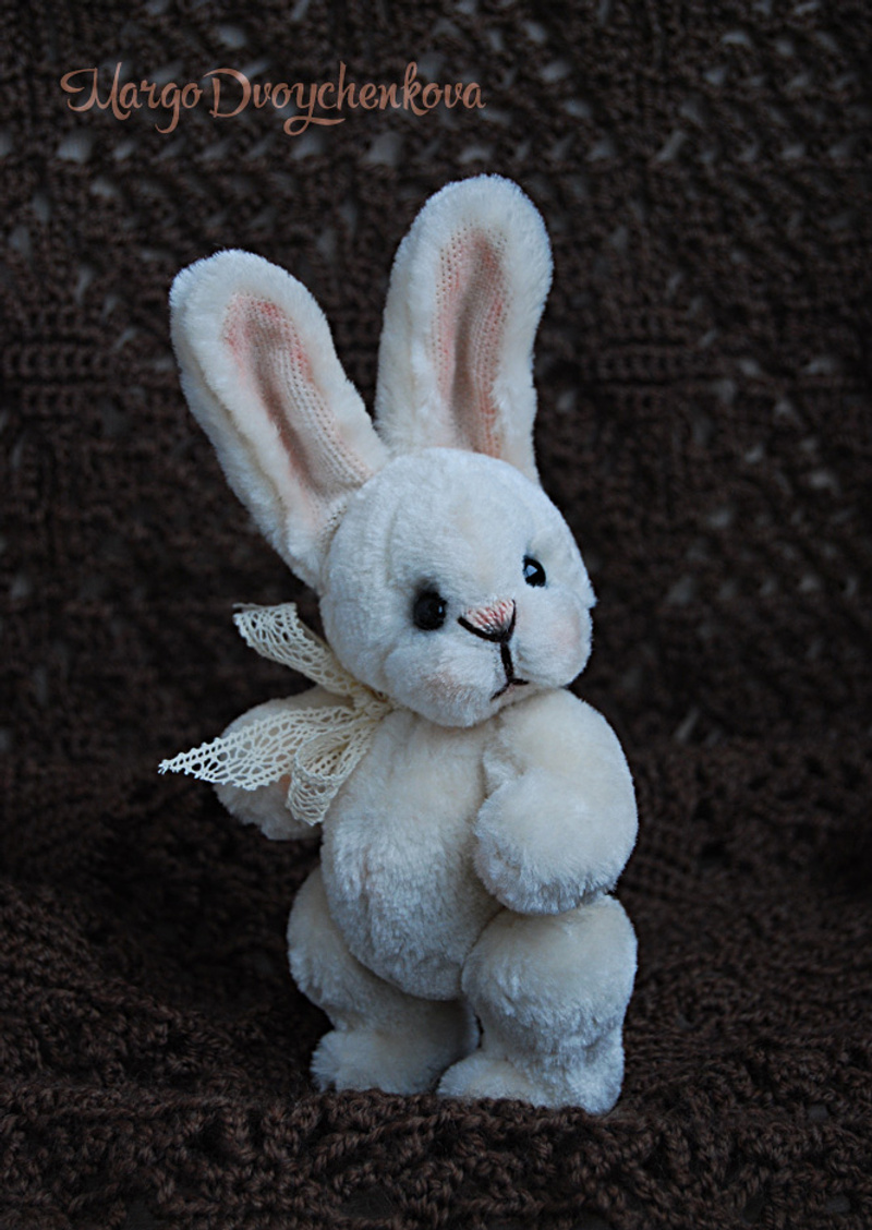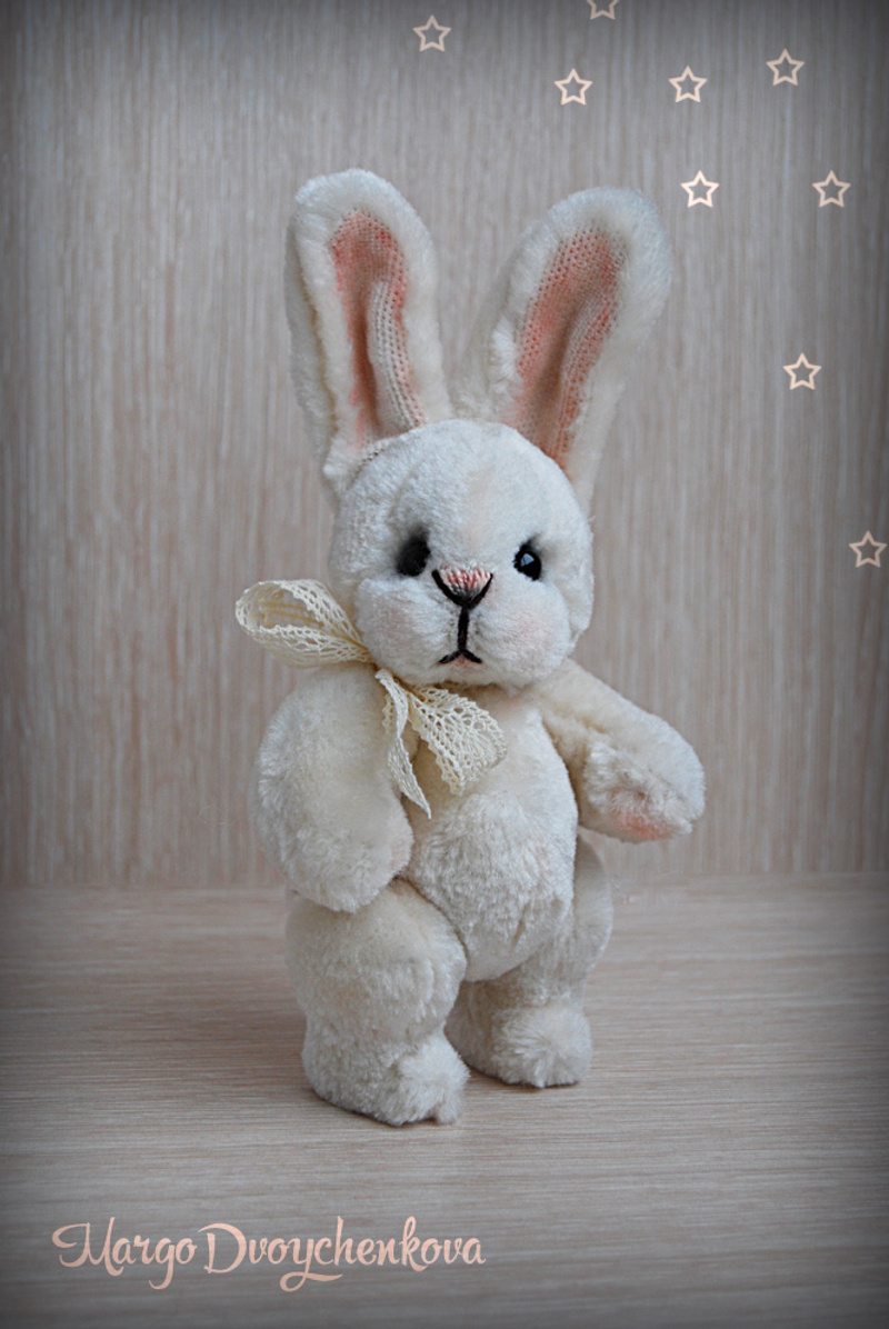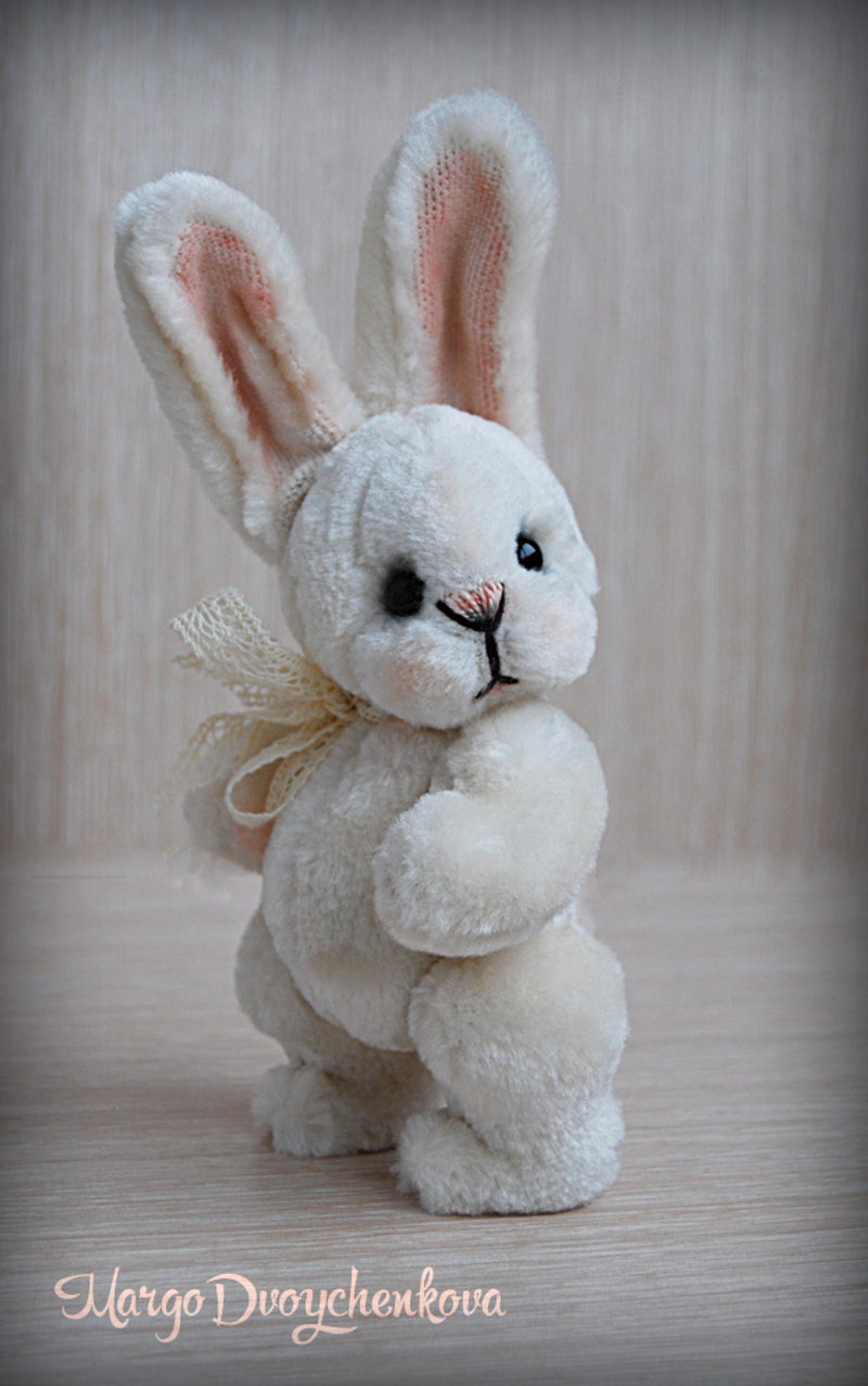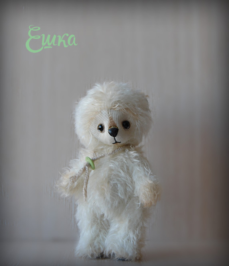 Выполнена из очень мягкого и тискательного искусственного меха Schulte приятного молочного цвета, набивка синтепух, утяжелена металлическим гранулятом, глазки стекло, 6 шплинтов, тонировка художественным маслом, сухой пастелью и текстильным маркером.