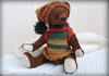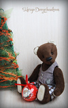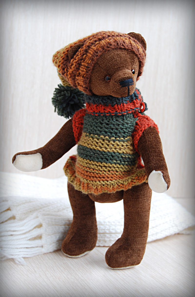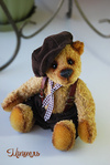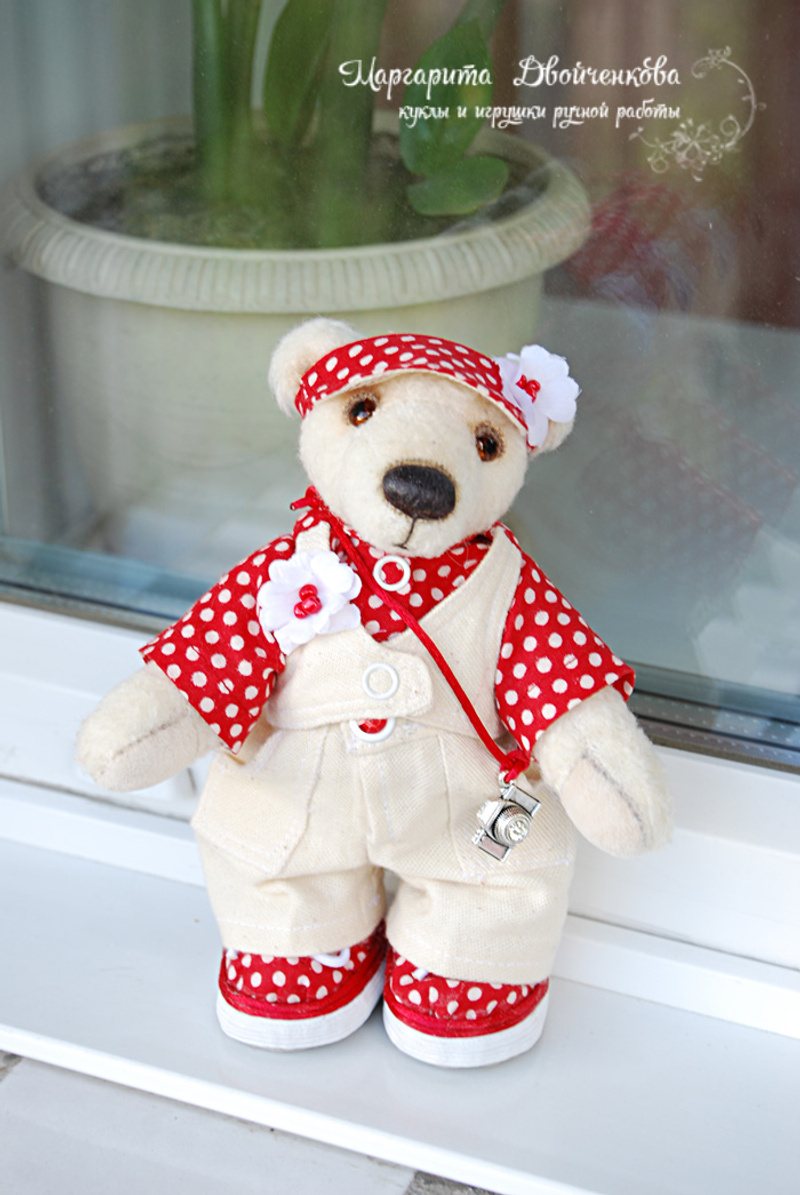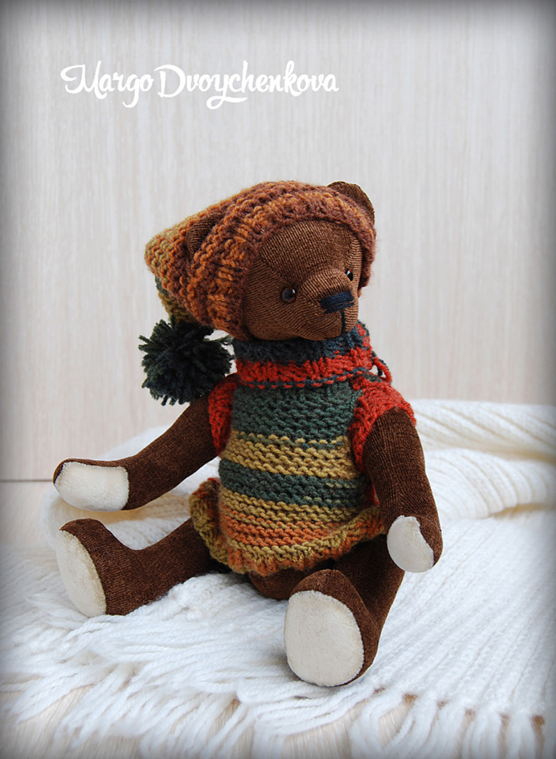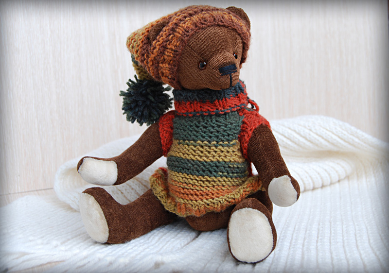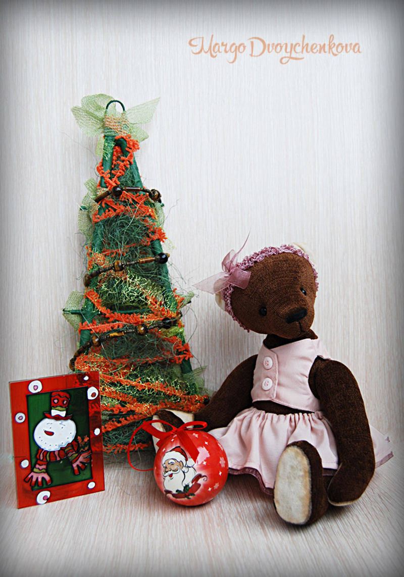 Мишка выполнен из искусственного меха, ладошки,пяточки и внутреннее ушко из миништофа, набивка синтепух, утяжелён металлическим гранулятом, 6 шпинтов, глазки стекло, носик из пластики, тонировка художественным маслом, пастелью и текстильным маркером. Одет мишаня во "взрослый" галсткук и вязанную шапочку с помпоном.