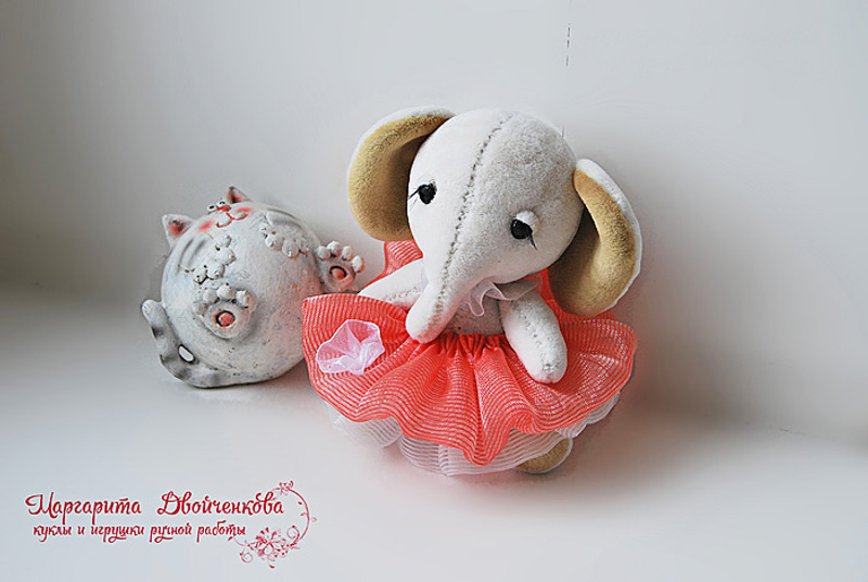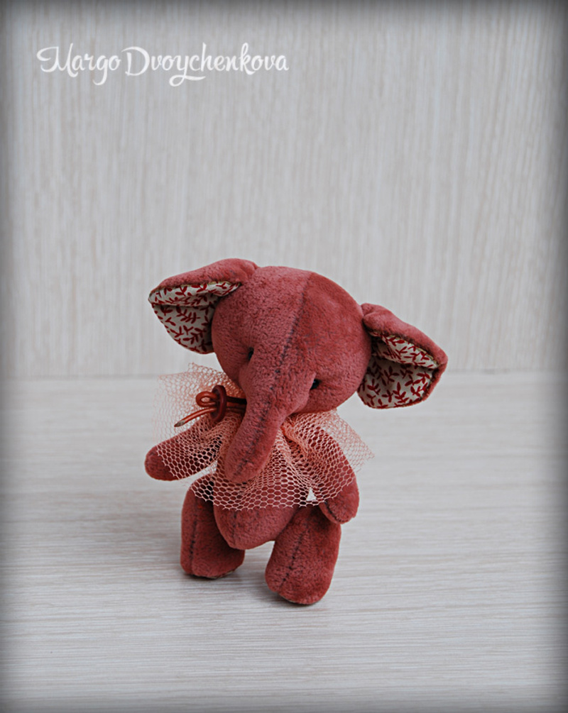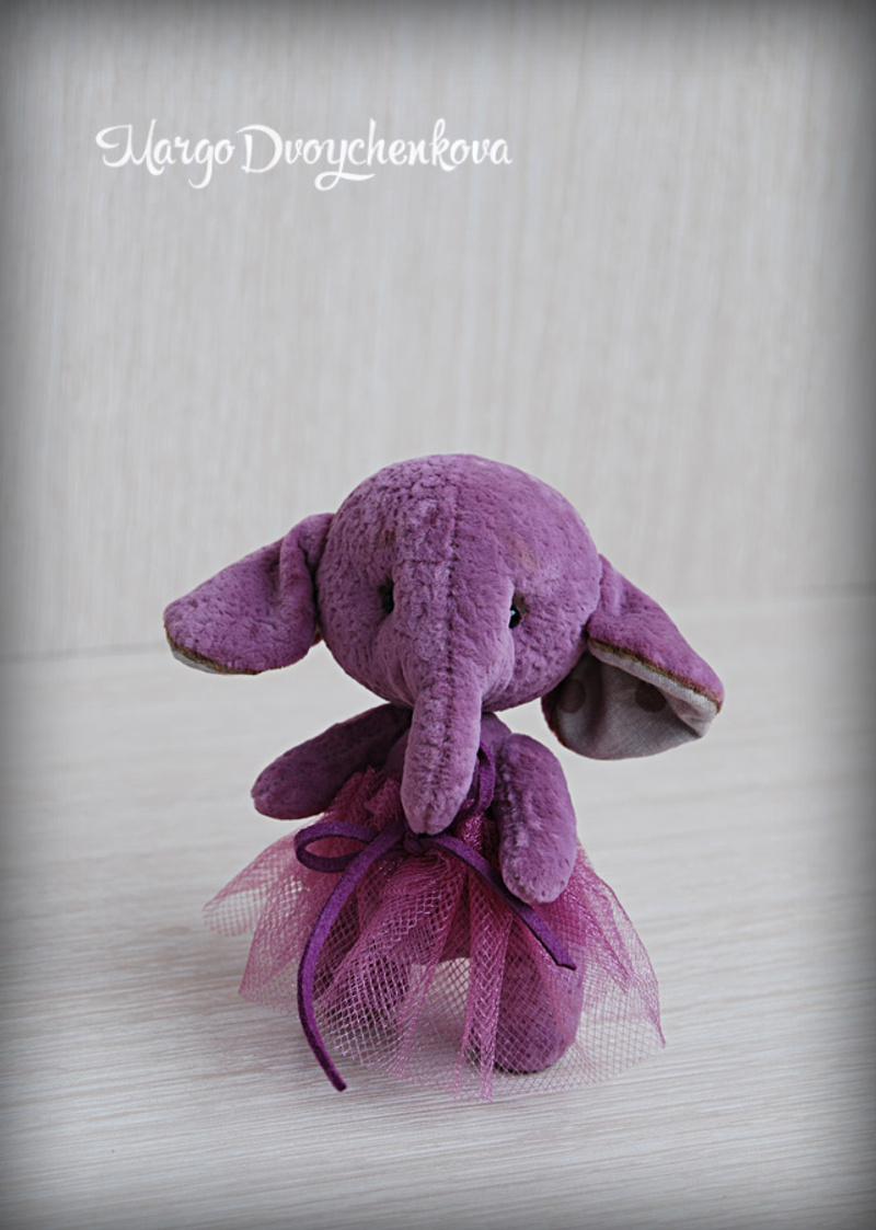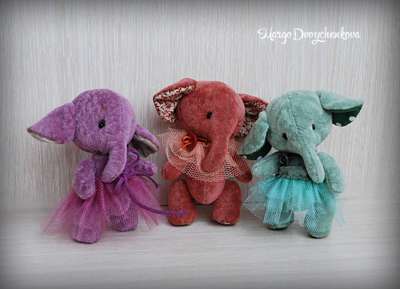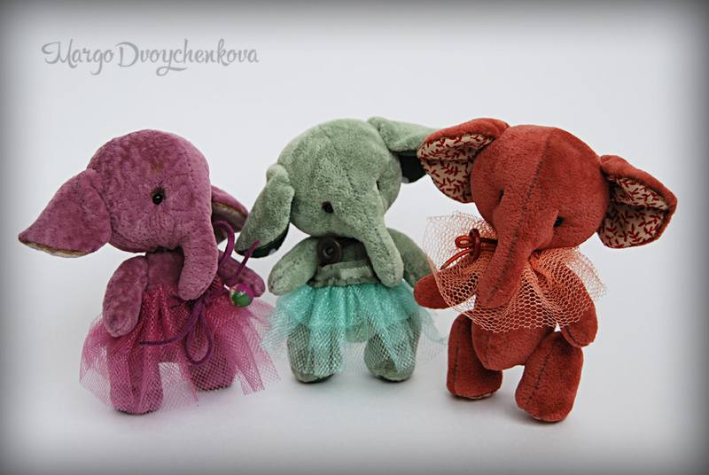 Выполнены из материала для миниатюры, пяточки и внутреннее ушко из американского хлопка, набивка синтепух, утяжелены металлическим гранулятом, глазки стекло, 6 шплинтов на каждую слоню. Легкая тонировка художественным маслом и текстильным маркером.