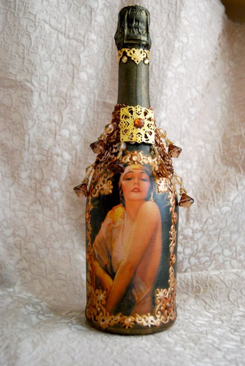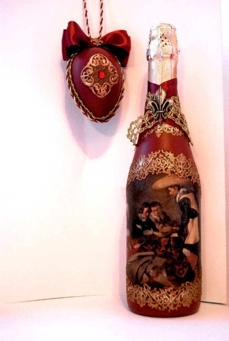 Осталось совсем немного времени до Нового года, хочу представить несколько своих вариантов по декору шампанского. Такая бутылочка всегда эффектно будет смотреться на праздничном столе, а так же послужит прекрасным подарком для любимых, друзей и коллег!