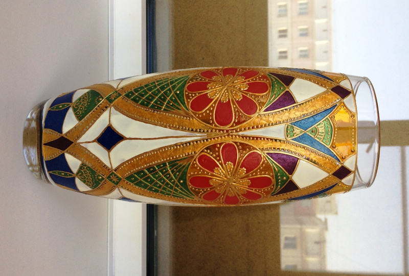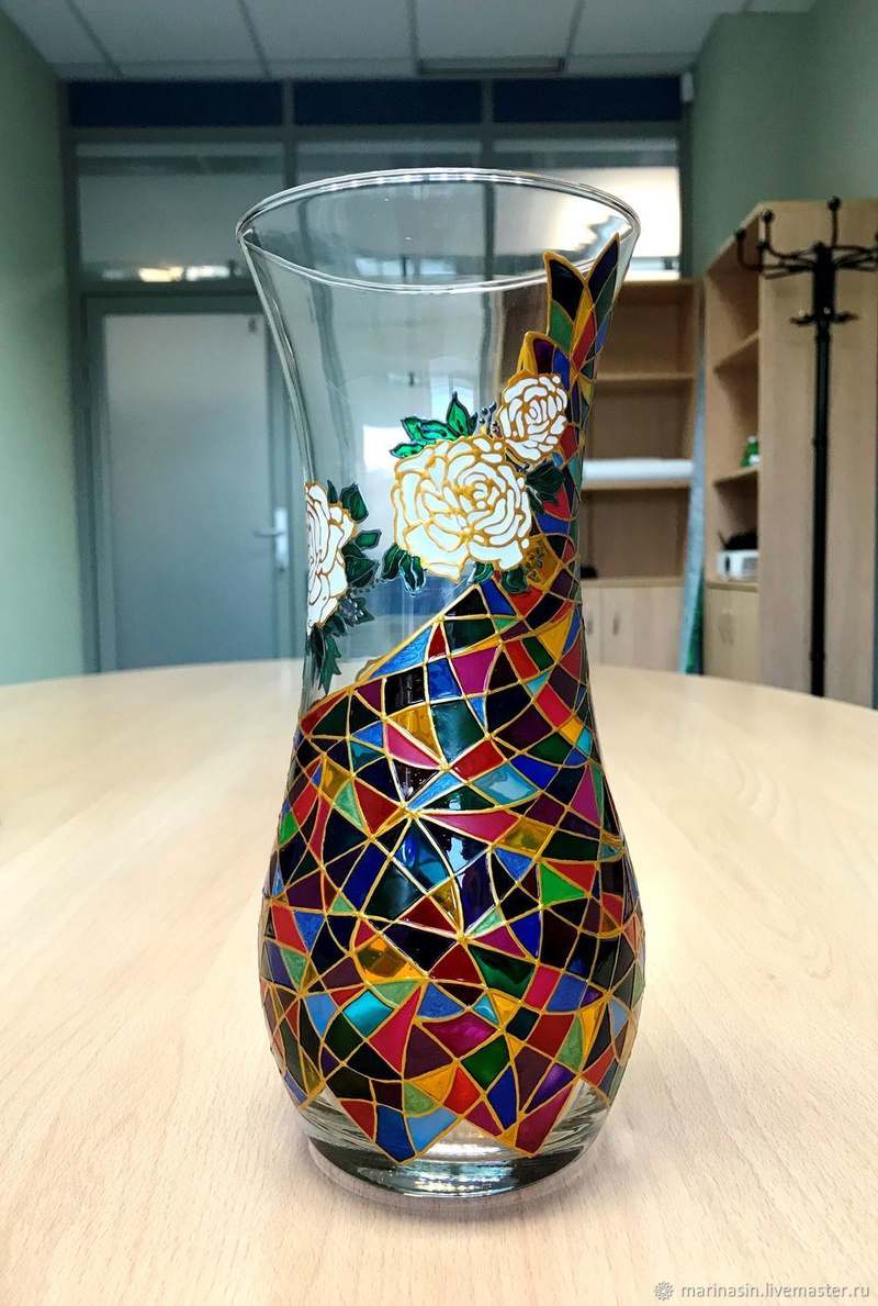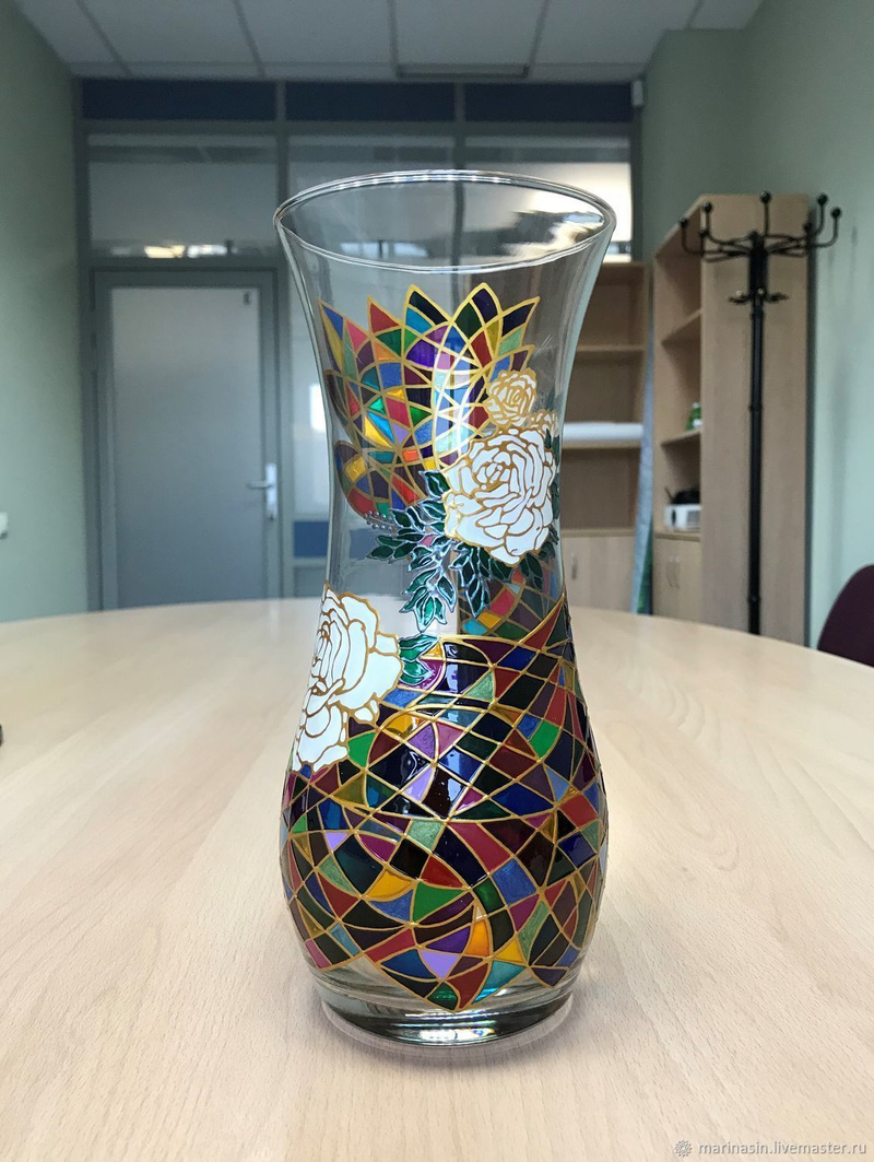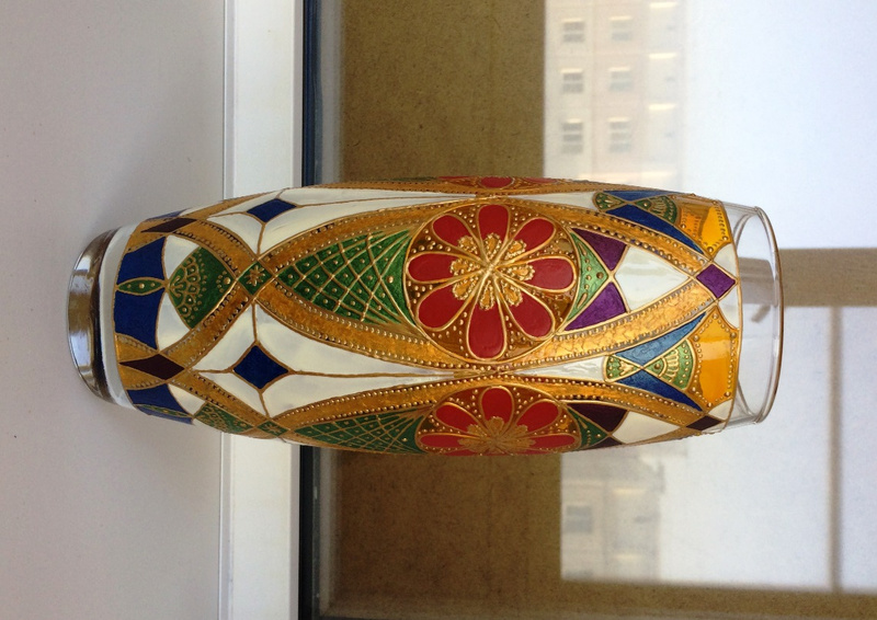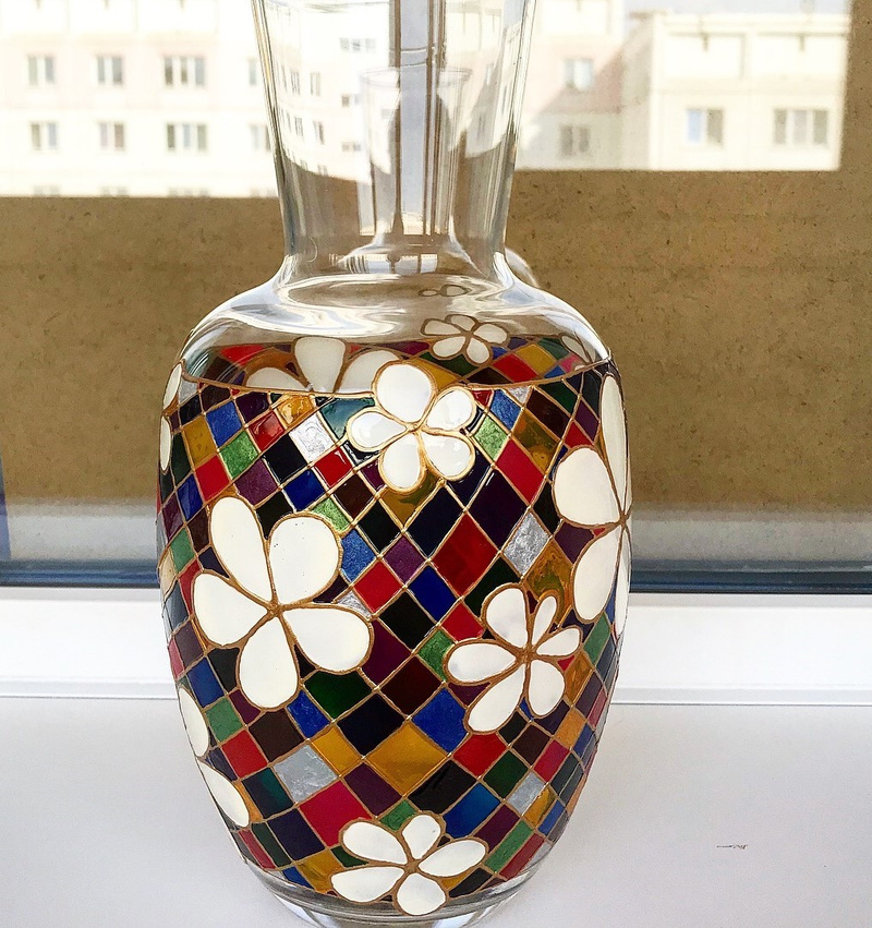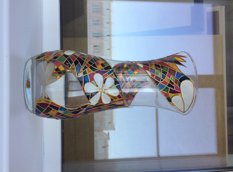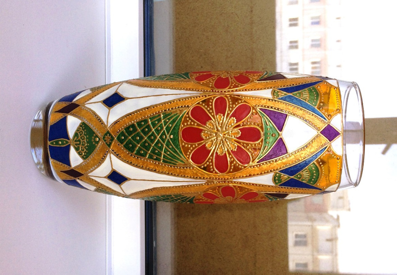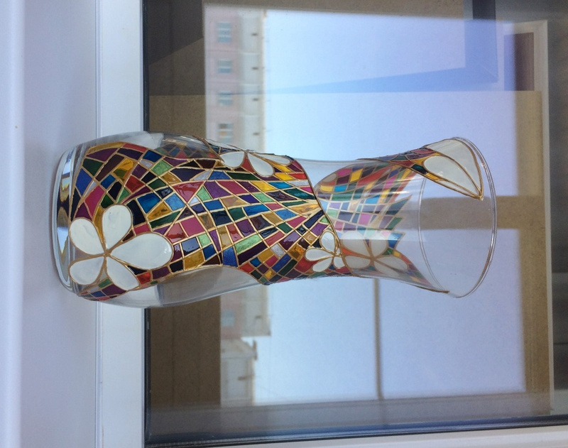 Ваза, декорированная контурами и красками, с последующим обжигом при температуре 160 С