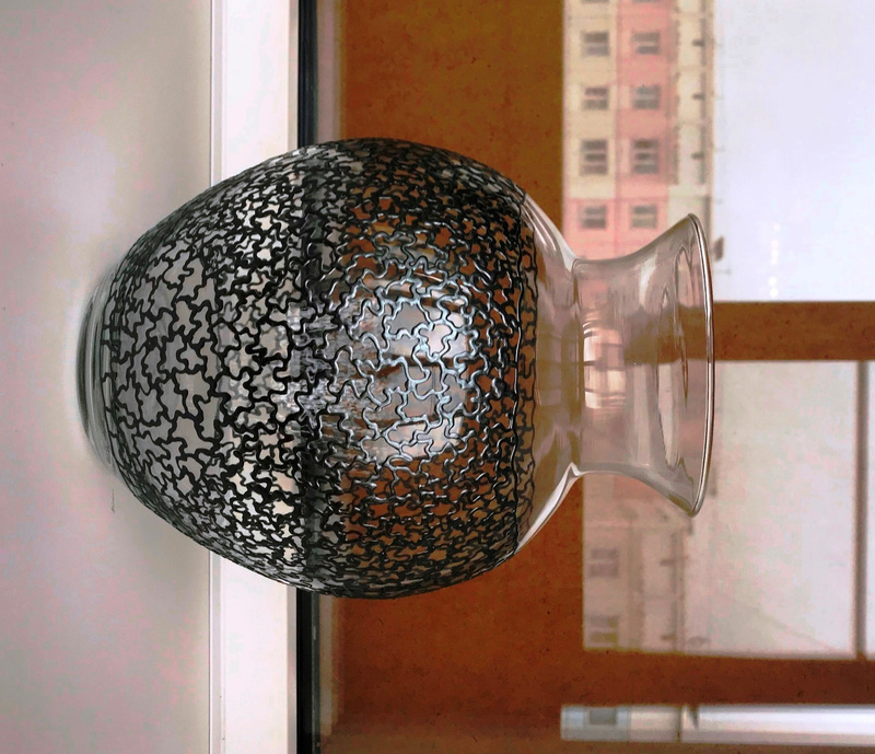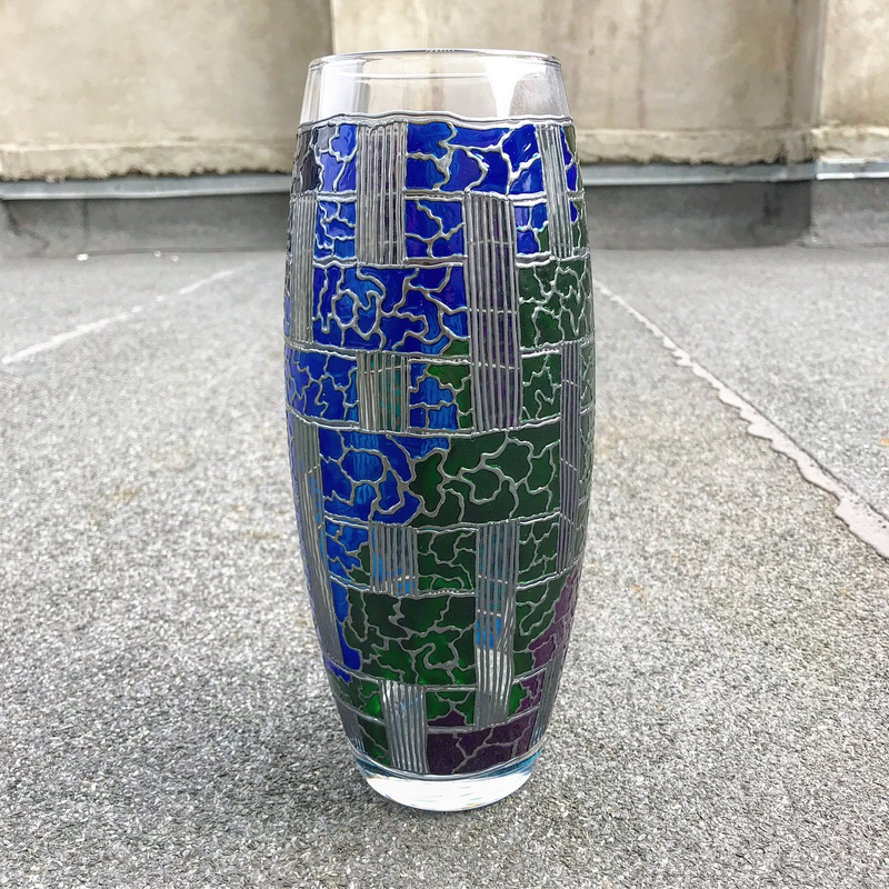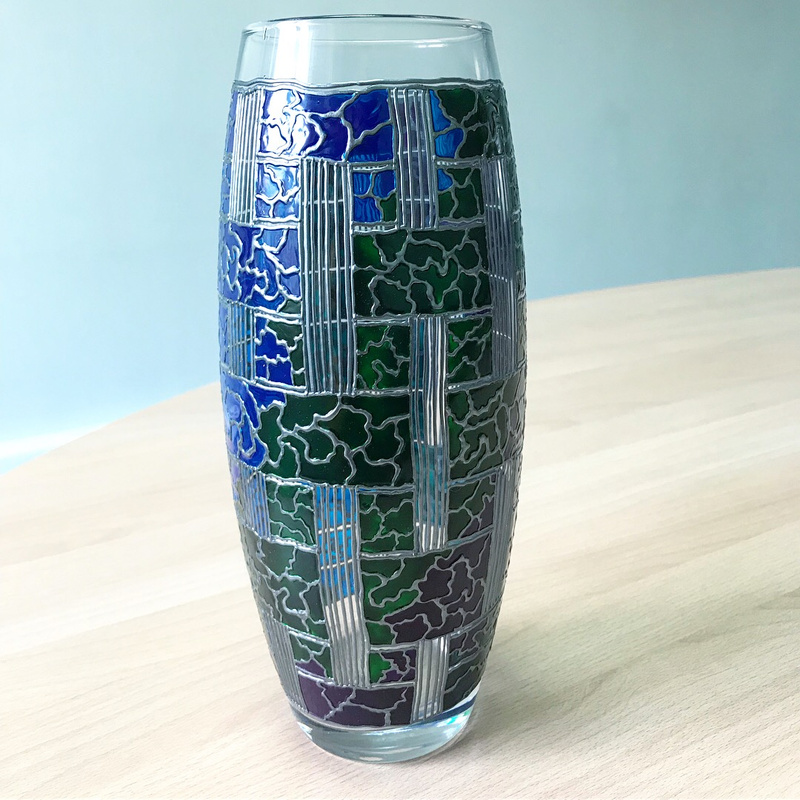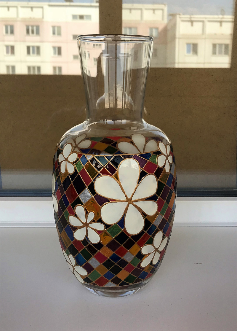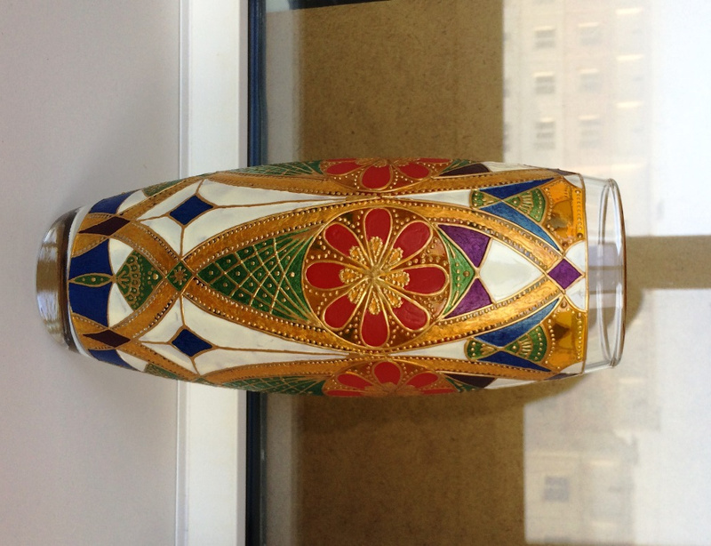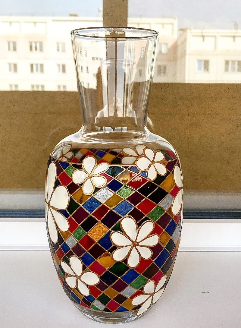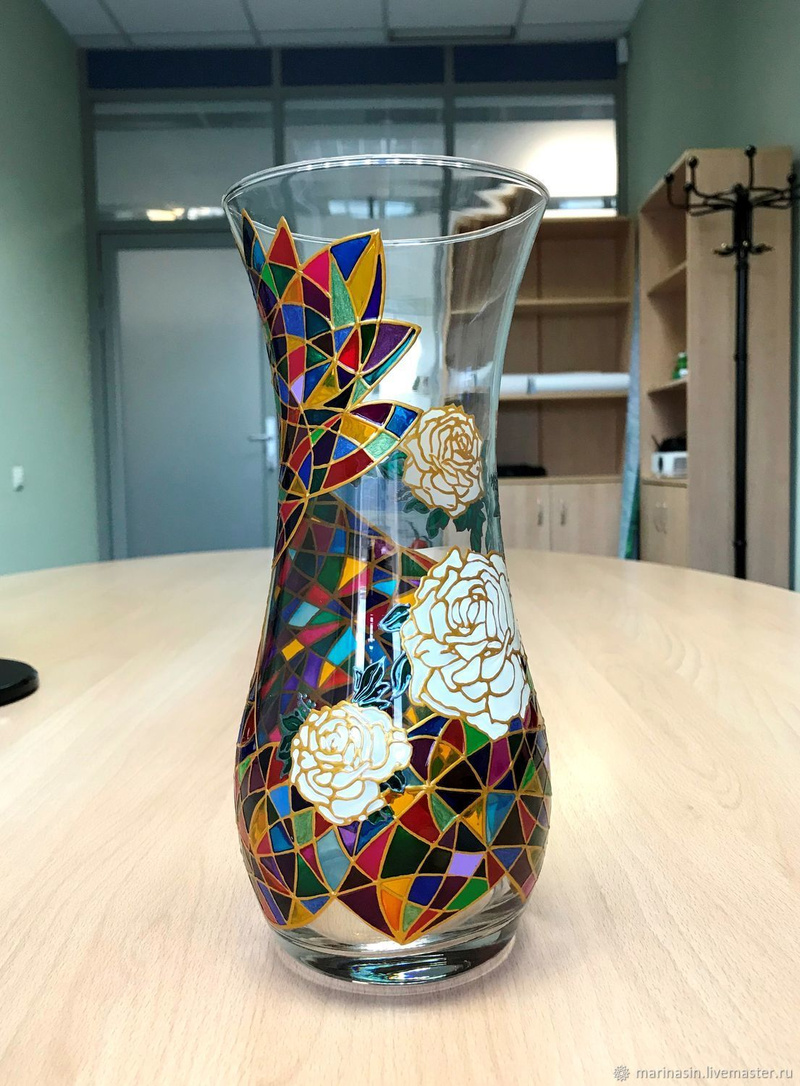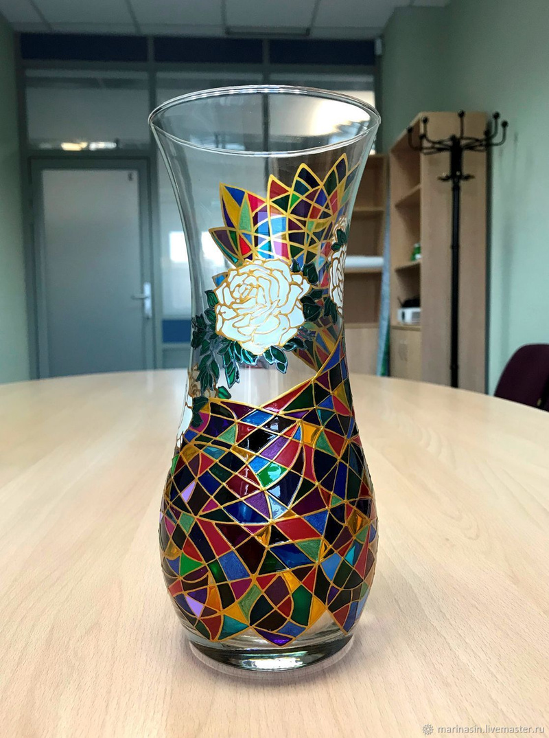 Ваза, декорированная контурами и красками, с последующим обжигом при температуре 160 С