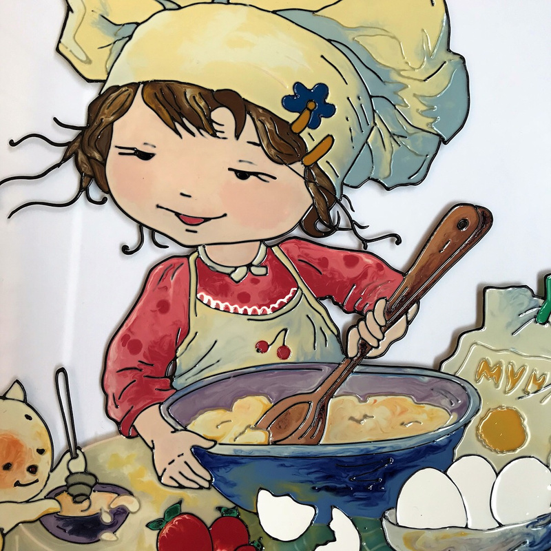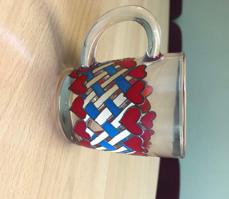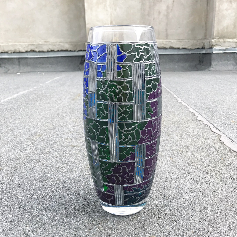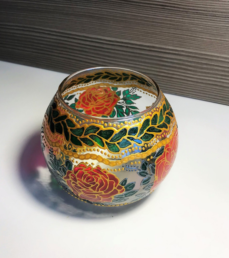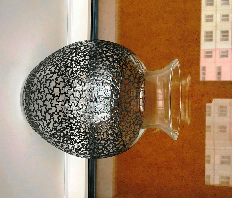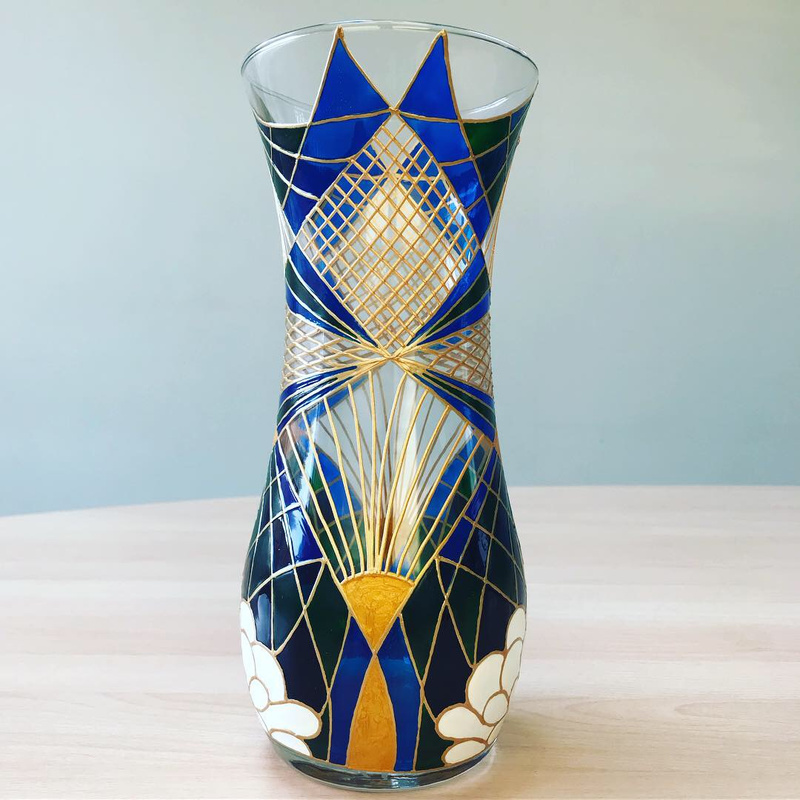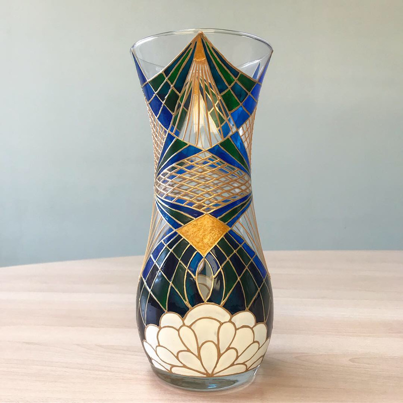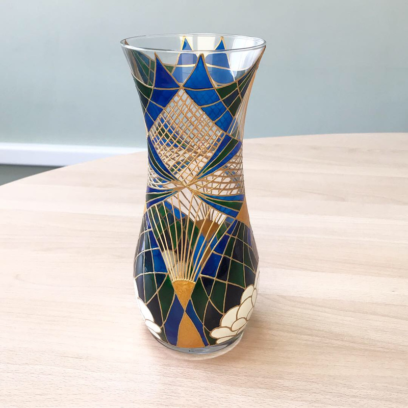 Ваза, декорированная контурами и красками, с последующим обжигом при температуре 160 С