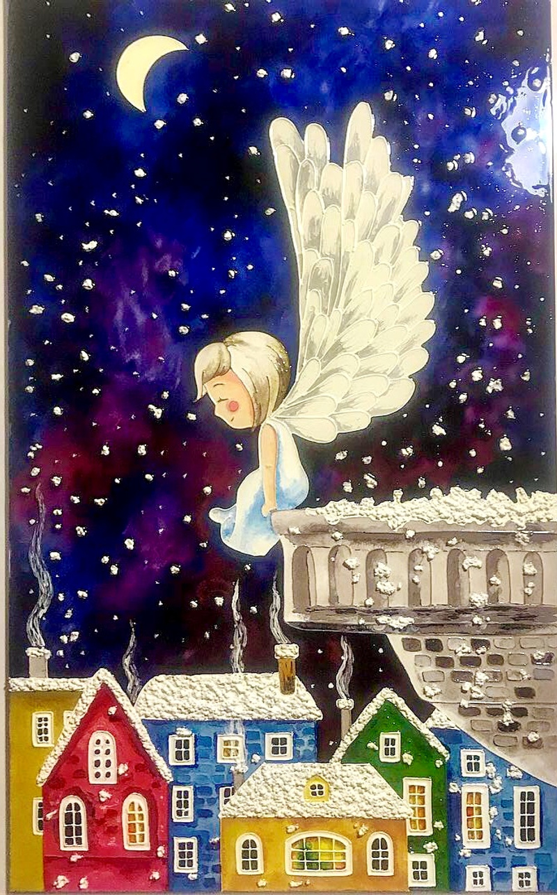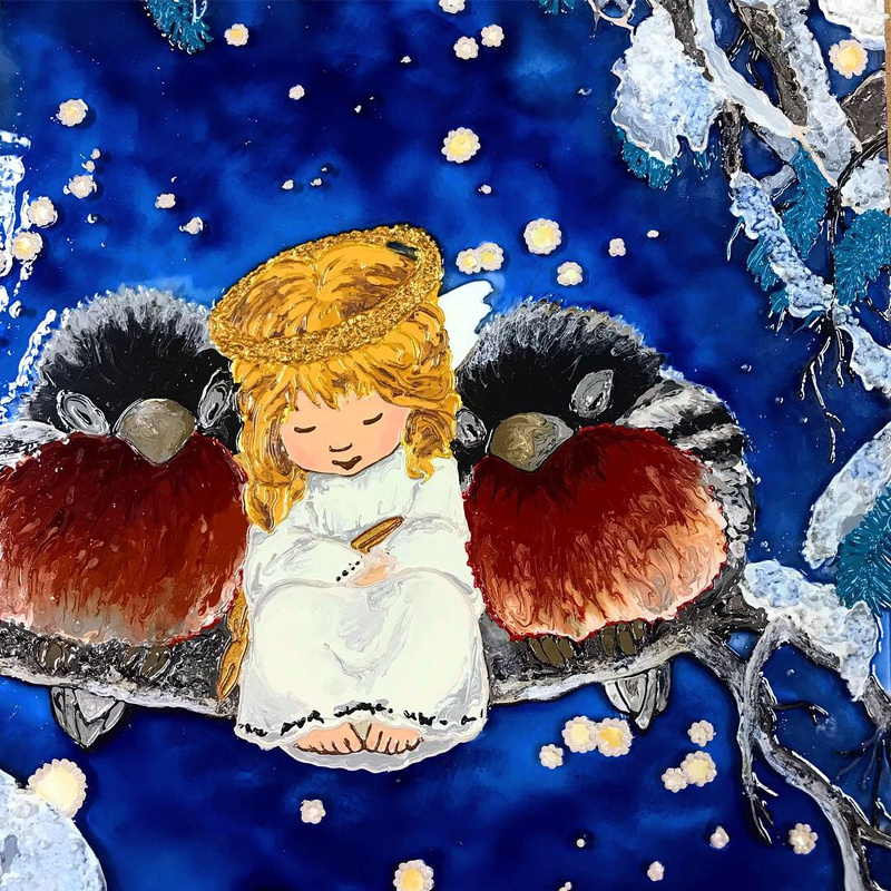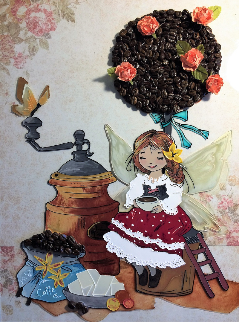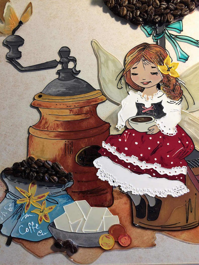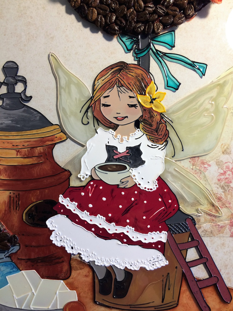 "Кофейная фея" Екатерины Бабок в моем исполнении на стекле.Еще одна Фея))