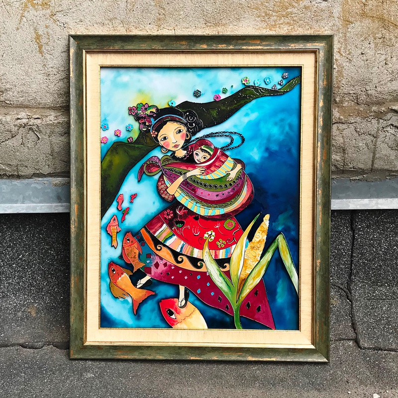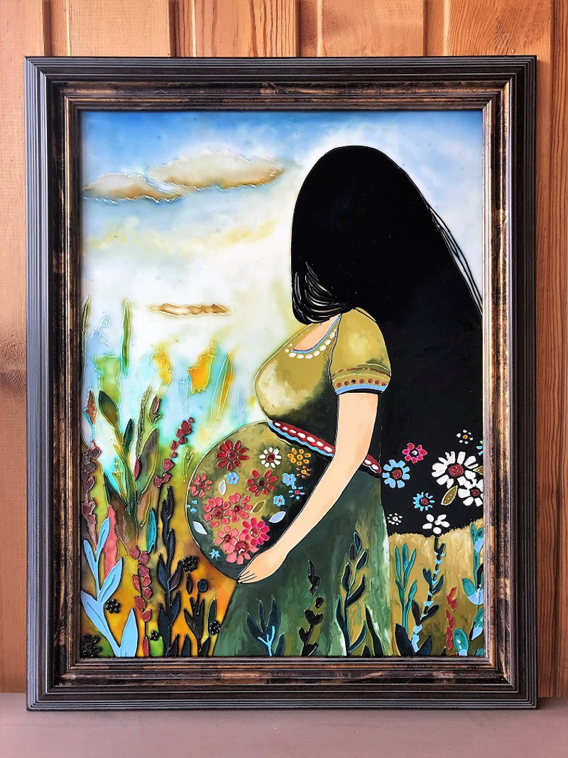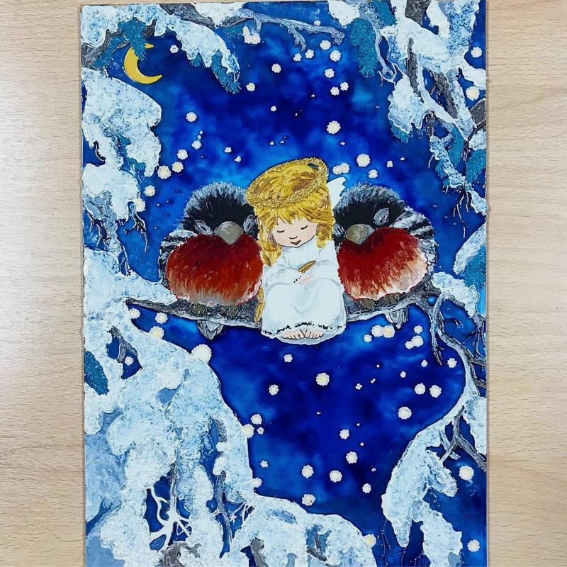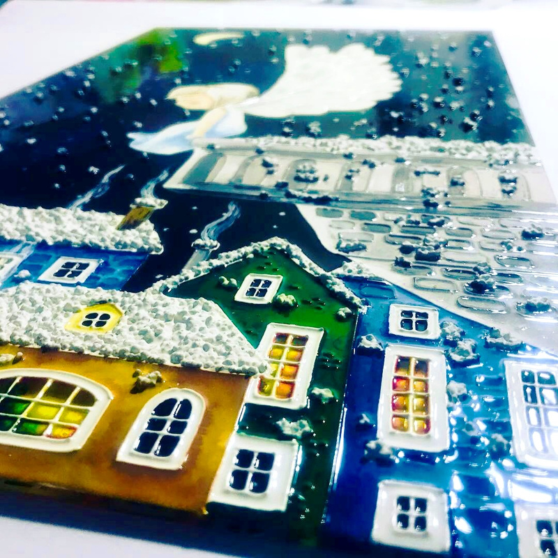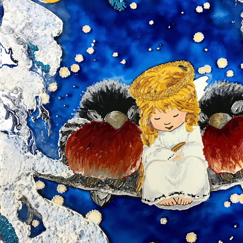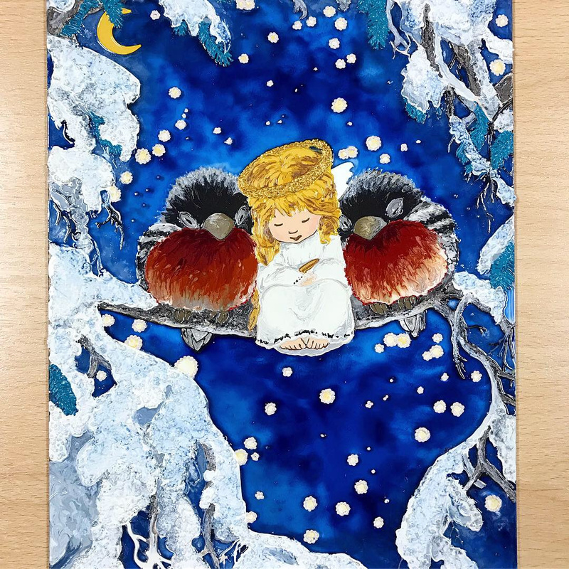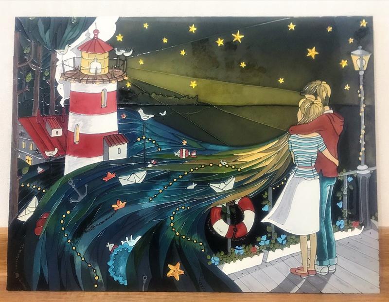Еще одна работа. За основу взята картина Claudia Tremblay.Размер 30*39 см. Стекло толщиной 4 мм.
