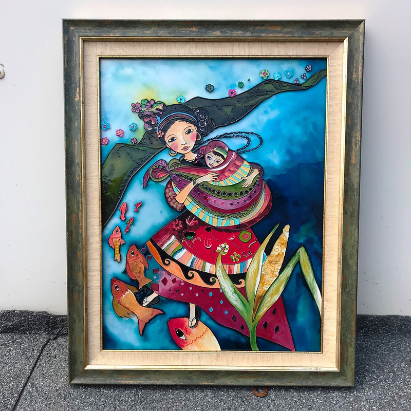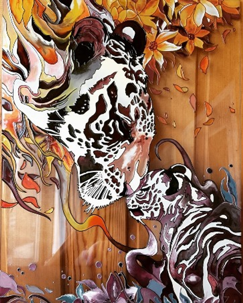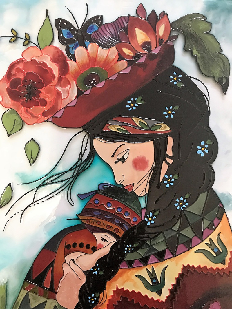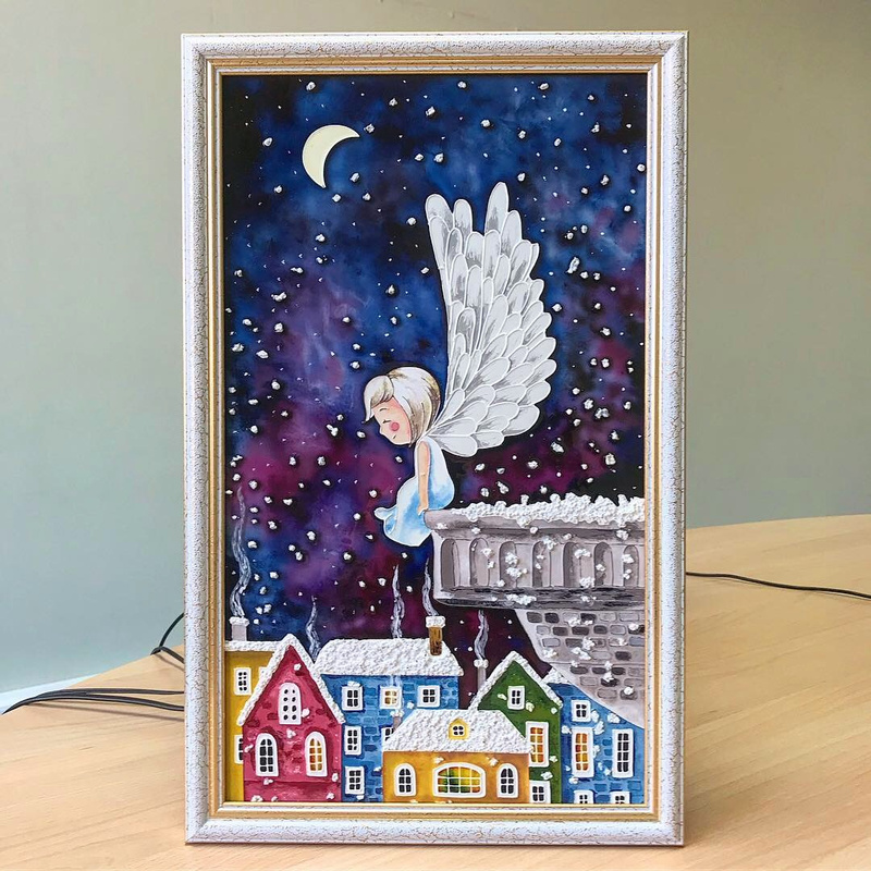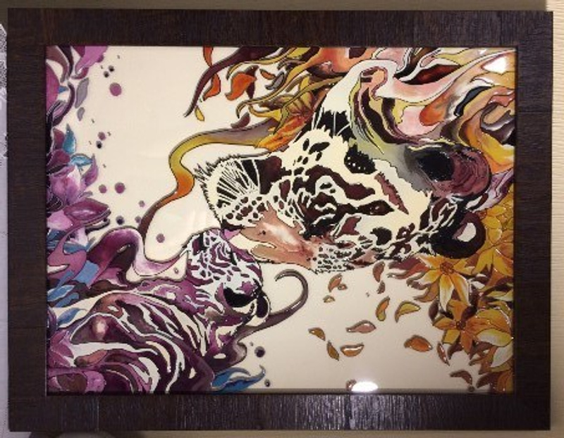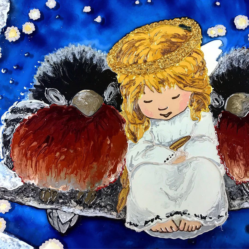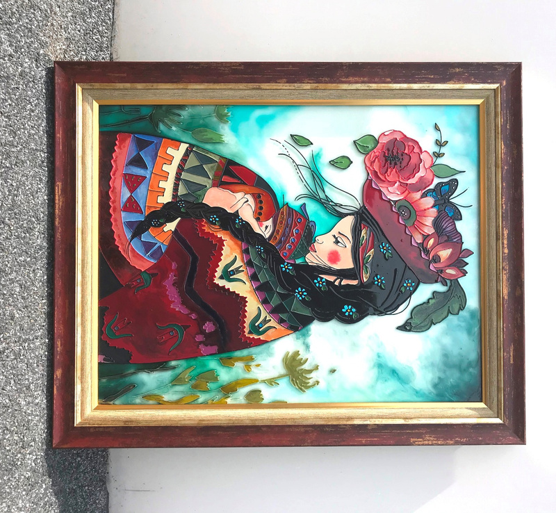 Еще одна работа. За основу взята картина Claudia Tremblay.Размер 30*39 см. Стекло толщиной 4 мм.