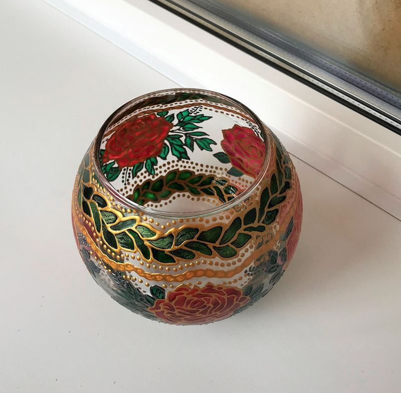 Ваза, декорированная контурами и красками, с последующим обжигом при температуре 160 СЕще