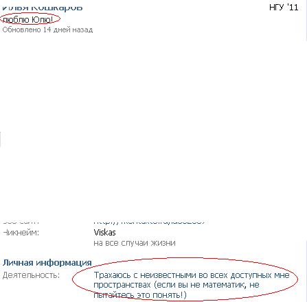 В ответ на: также нужно было проверить версию с юзером аорга rainyweather. ник говорит сам за себя дождливая погода(у маньяков обострения в такую погоду). плюс любитель ножей. плюс среди первых написал в топик о на аорге о пропаже. ну а его топик как он смаковал то, что у него вода пахнет мертвечиной, да еще и совпадение того топика с датой нахождения девушки с оперы(плюс как я понял он еще и живет там рядом). ну очень много для одного персонажа.