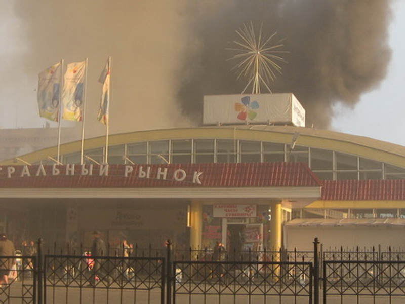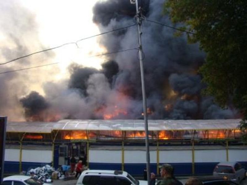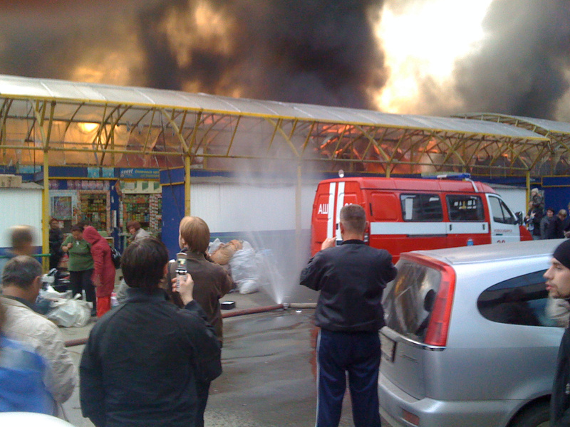 горит павильон "всё для ремонта", который соединялся с рыбными рядами. Краскаи всякая хня химическая взрывалась , а теперь догораетЗавтра рыбка горячего копчения в продаже появится...