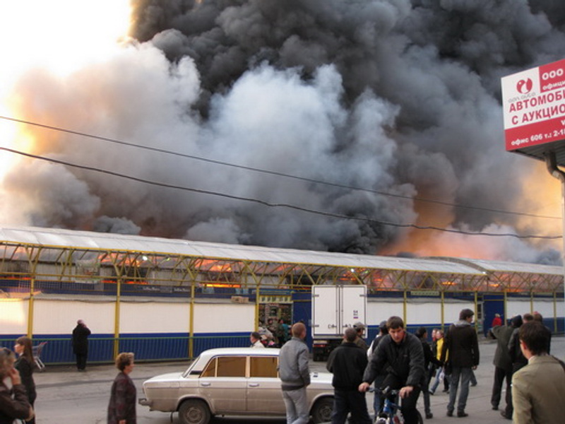 Около 18 часов вечера в одном из киосков, торгующих бытовой химией, из-за неуклюжести продавца с прилавка упала и разбилась бутылка с ацетоном. Торговка попыталась тряпкой вытереть горючую жидкость. Как раз в этот момент мимо проходил один из покупателей, который ненароком бросил окурок. Пламя вспыхнуло мгновенно и охватило весь киоск, а затем переметнулся на соседние. «Масла в огонь» подлило огромное количество бытовой жидкости.сибкрай