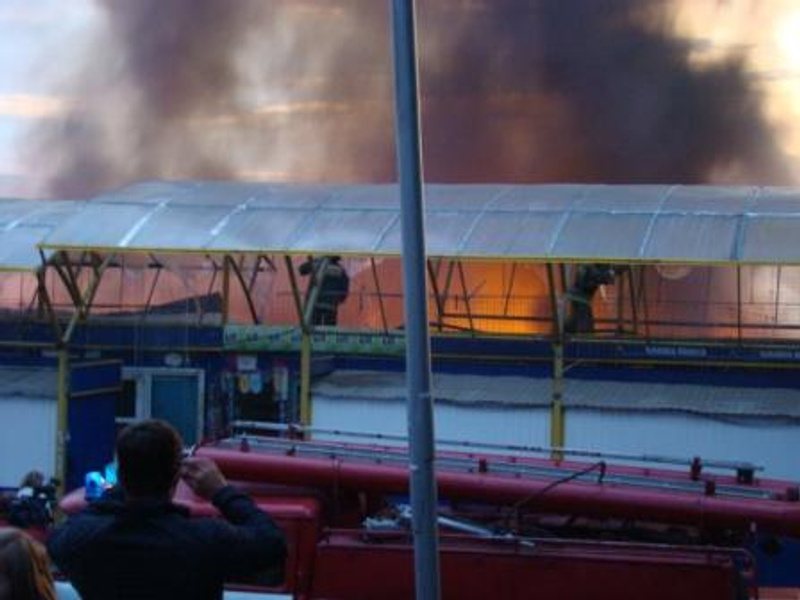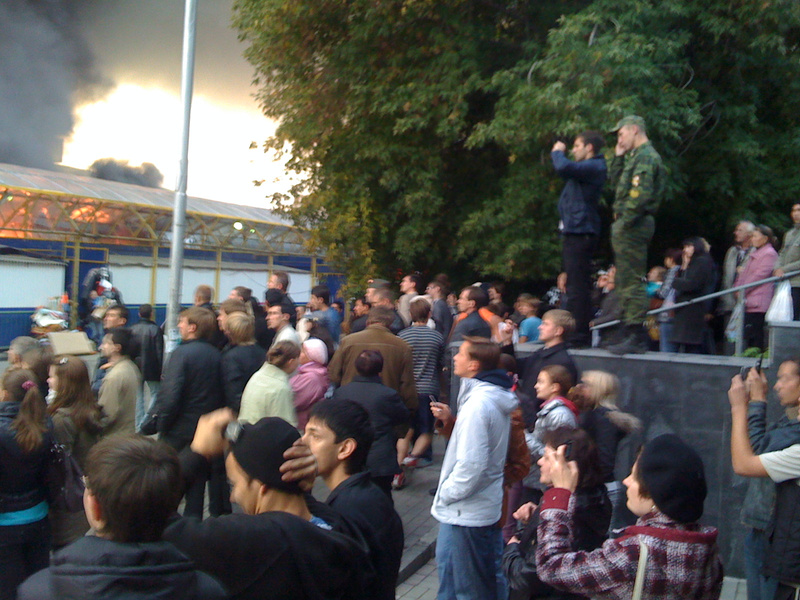 и еще.. На переднем плане видно, как тогровцы товар спасают из киосков, боясь, что на них перекинется огонь.а я уже видел фотки, как сами работники грузят уцелевший товар в машины и спешно увозят в неизвестном направлении