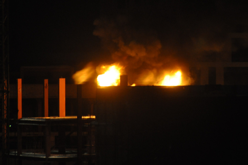 Стройплощадка возле ГУМа. Похоже горели теплоизоляционные материалы (хотя они вроде не горючие). Увидели случайно, вообще спать собирались. Пожарные приехали минут через 5.