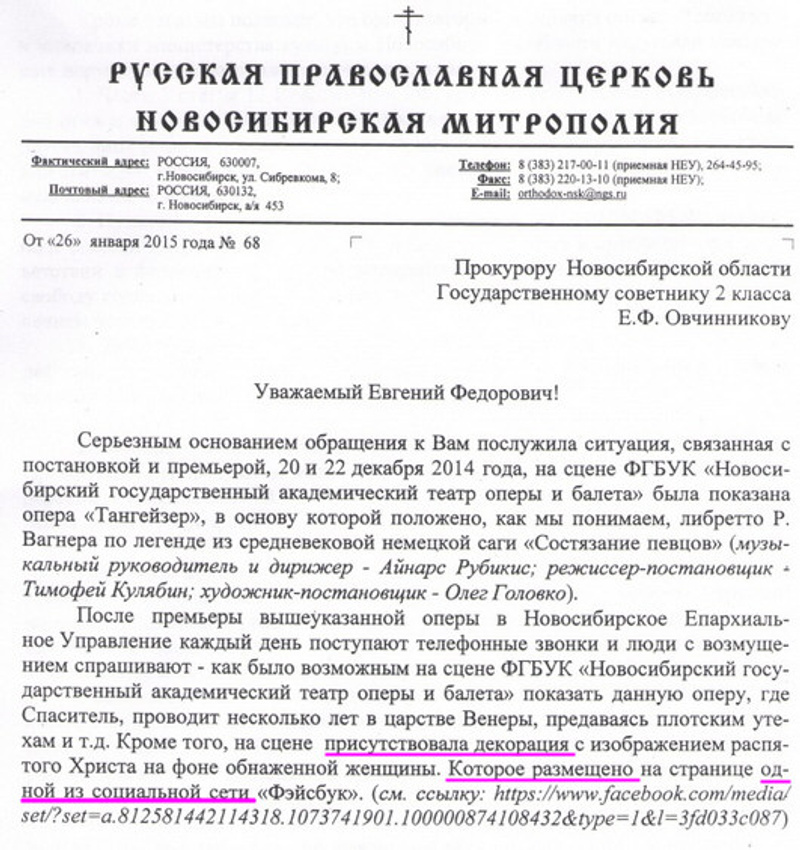 берем дату статьи на НГС с высказываниями Тихона касательно оперы, сопоставляем эту дату с датой выхода статьи про возбуждение дела прокуратурой. Считаем сроки. Если знакомы, имели дело с жалобами в прокуратуру и сроками ее, прокуратуры, реакции на вашу жалобу, то удивлемся. Если нет, то гугл вам в помощь.