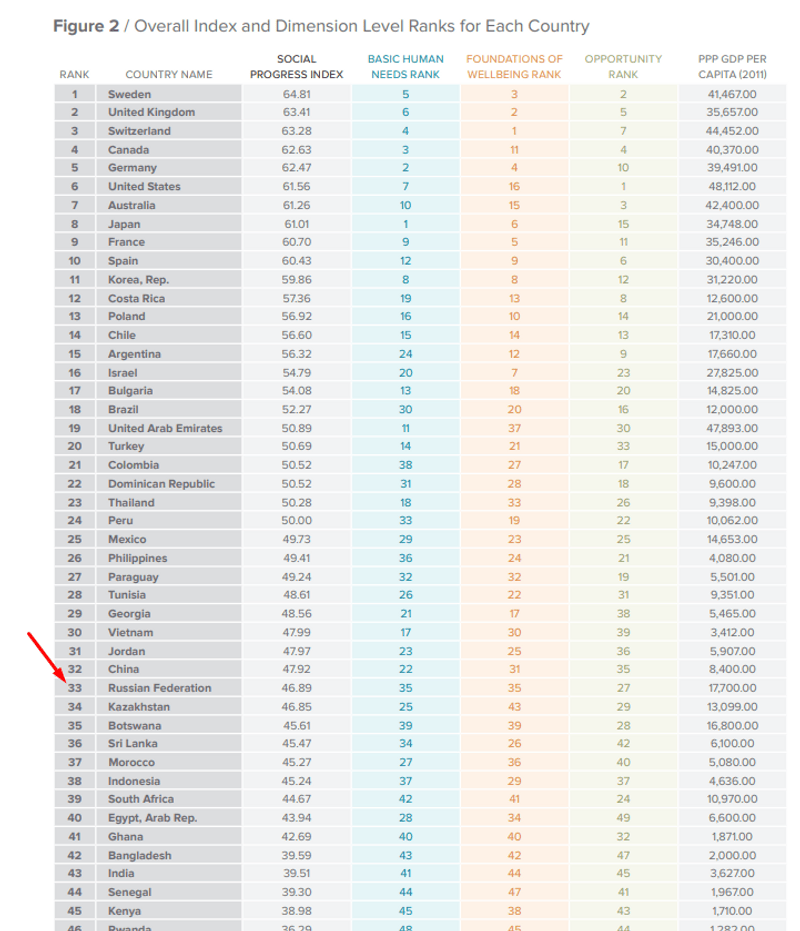 У России 69 место. Китай - 100.Надо сначала понять, где мы в этом рейтинге были раньше. А то может еще поднялись.