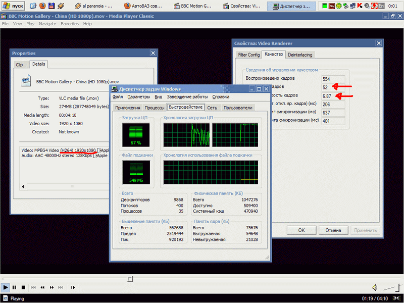 1080p, H264 с поток порядка 10 Мбит - 100%, 15 кадров/сек, куча пропущенных кадров.неправда.