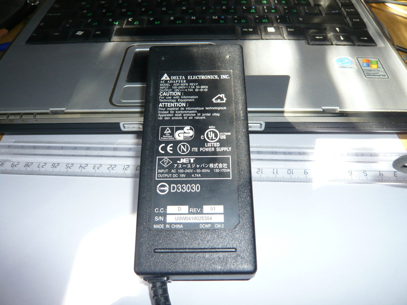 Периодически стал отключаться БП от старенького ASUS-2500L (см. фото). Иногда работает без проблем, но иной раз начинает через несколько минут оключаться (гаснет светодиод). А т.к. батарея уже скорее мертва, чем не работающая, соответственно ноут тоже отрубается через несколько секунд (иногда при появлении сигнала о переходе на батарею успеваю всё отключить).