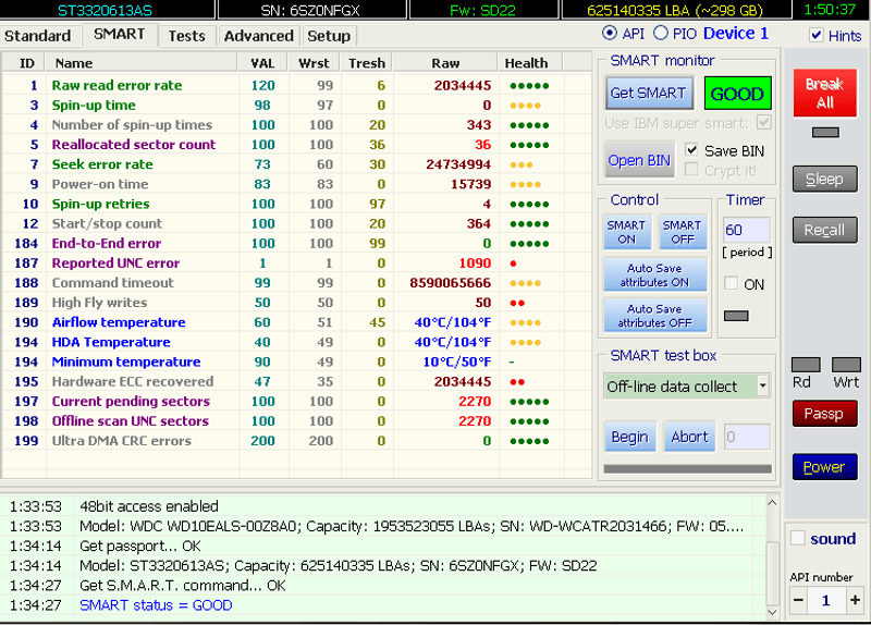 проблема такая - исчезла иконка диска из Моего Компьютера. Полез в диспетчер - диск анет, перезагрузился. Вылезла проверка этого диска и с 30% пошли сплошные нечитаемые сектора. Так примерно до 70%, может больше. Винда загрузилась - диск видно но назван он по умолчанию - Локальный диск и на него не зайти. Вот смарт