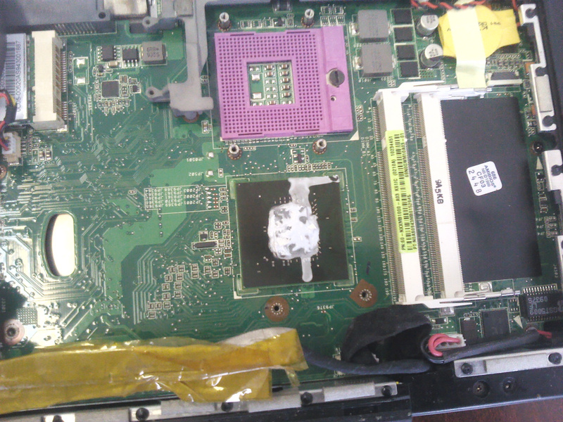 белое сопливое - это, похоже, термопаста. Но почему она потекла? И если ее аккуратно убрать и нанести новую - оживеет ли тушка?