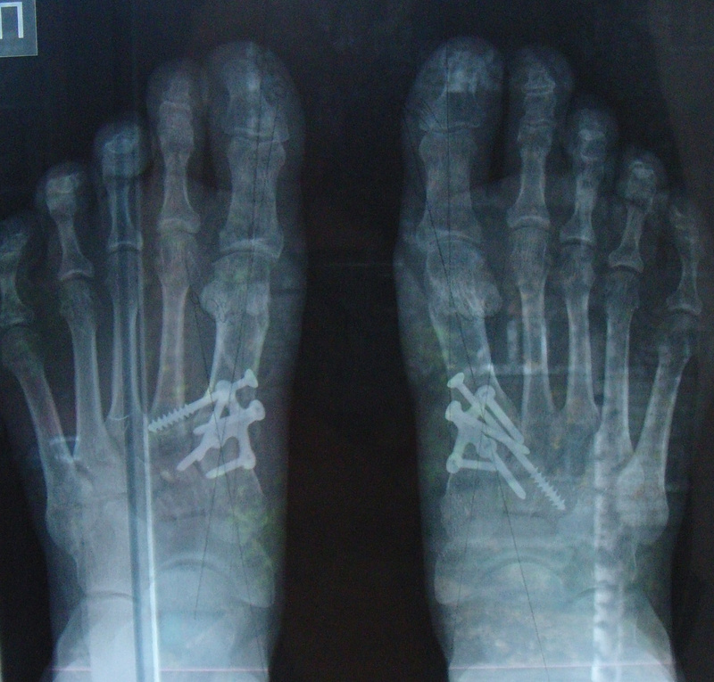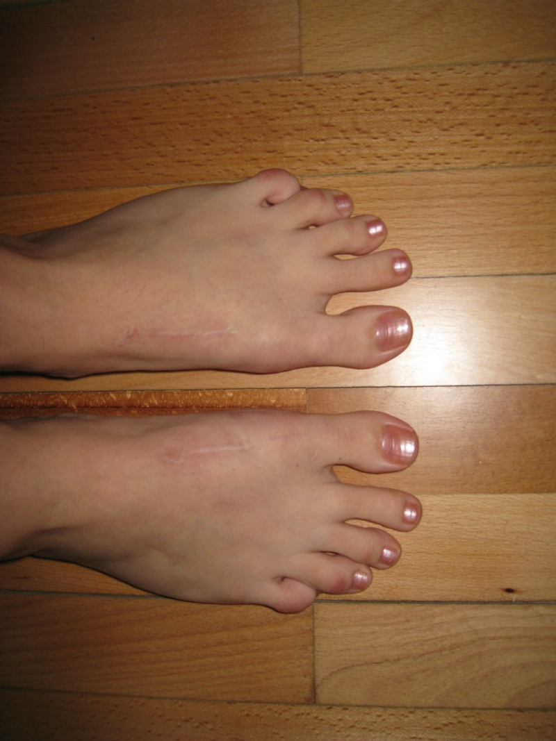 Оперировал Пахомов, хотя записывалась я у другого, они как-то все поменяли в последние дни. У меня в каждой ступне по 2 винта (скрепляют большой палец и кость в стопе) - это была остеотомия. Шрамы на мой взгляд не бросаются в глаза (может завтра сфотаю и выложу до и после). Фитнесом я занималась, с этим все нормально. Правда первую зиму после операции я лыжный сезон пропустила, хотя запрещено мне не было. Ещё мне говорили, что можно после заживления костей вытащить винты (или у кого пластины), но естественно проходить оперативное вмешательство опять я не собиралась. По поводу восстановления: недели полторы после выписки по дому я каталась на стуле с колесиками - жалела себя и не ходила:)... потом месяц ходила в спецобуви (о ней писали выше), выглядело это по дурацки, но уж точно лучше костылей с гипсом. Потом ещё месяца 3 ходила в удобной мягкой обуви на плоской подошве, вот и всё. Спрашивайте что интересует, а то у нас реально об этом мало информации.Ответ на сообщение Re: Косточки на ногах пользователя AverAnna