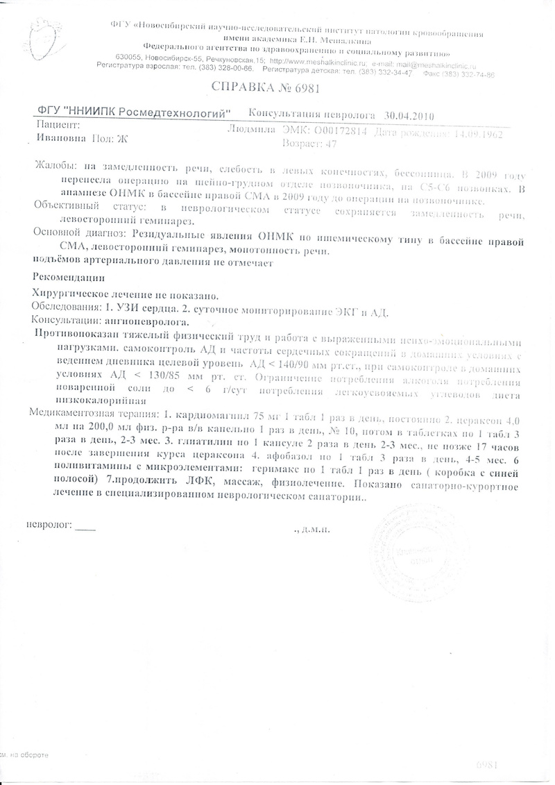 Вот значит у товарища мама болеет.. диагноз описан в файле... Куда можно пойти? И какие профилактические меры? упражнения может какие, чаи и т. п.