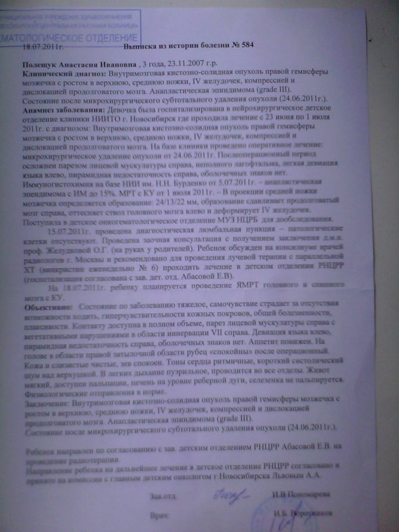 , проходит обследование. Есть тема про нее на форуме Сибмама, так же группа Вконтакте. Присоединяйтесь, малышке еще нужна будет помощь на реабилитацию.