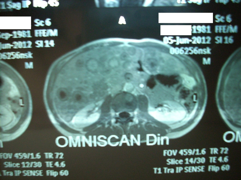 На приложенном скане - МРТ моей печени месяц назад, когда еще и живота как у беременной не было. Я думаю, возраст тут особой роли не играет, если здоровой ткани там почти нет.