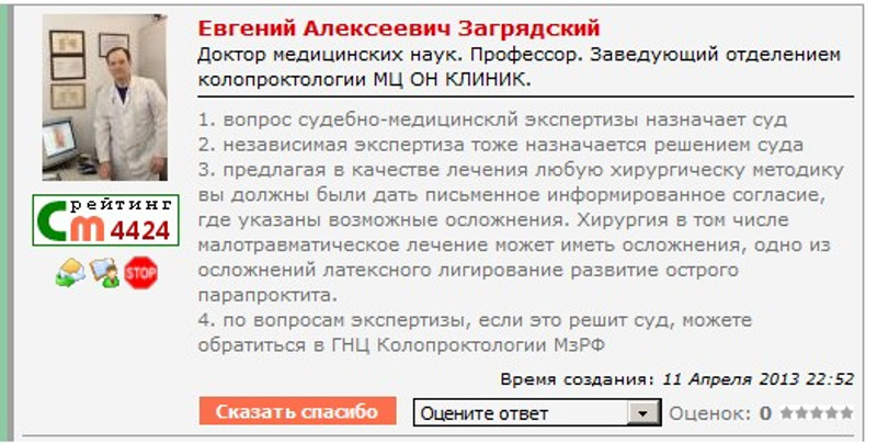 Жена позвонила в 11 горбольницу- там городской центр проктологии, вроде как лучшие врачи. Записала на прием в частном порядке к доктору Рутковскму Евгению Александровичу. Доктор сказал, что консультация у него стоит 800 руб.