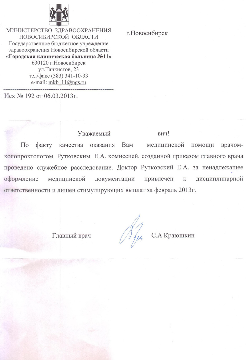 Это даже не "отругали врача,он обещал больше так не делать".Это,скорее, "сам дурак,а наши врачи лучшие". Что будете предпринимать дальше?