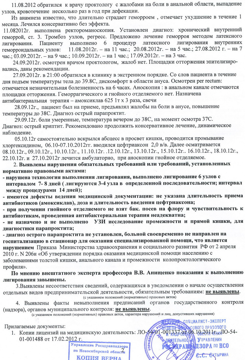 Осмотр закончен, снова проходим в кабинет к столу. Доктор ставит геморрой третьей стадии переходящей в четвертую. Вообще,-то говорит, это уже операция , но можно попробовать легирование сделать. Говорит, что легировать будет 5-7 узлов. Лечение будет длительным и болезненным.