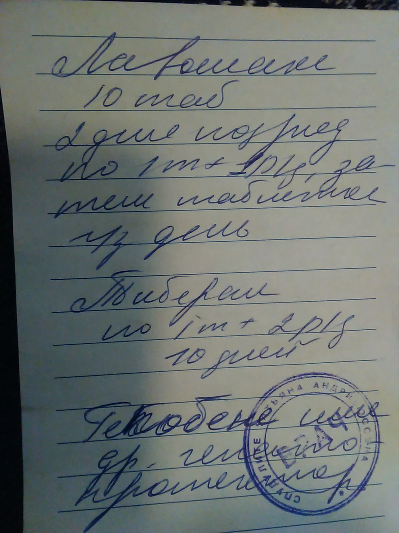 Тиберал 1 таб. 2 раза в день 10 дней.