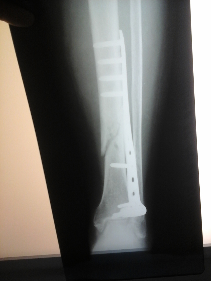 Я тоже не врач, но то что я вижу на снимке говорит мне о том что кость зафиксировали не в нужном положении и сейчас скорее всего пустота заполнится хрящевой тканью которая не сможет нести вес человека.