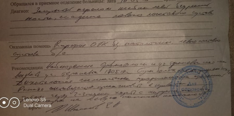 Там ей сделали гипс, выдали заключение и отправили домой, сказав, что дома ей восстанавливаться будет легче, чем в больнице. На операцию не взяли сославшись на возраст.
