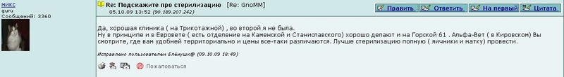 Это по отзывам Кати, ей я в этом доверяю. Мужчина там делает.Ответ на сообщение Re: Стерилизация кошки пользователя Gelli