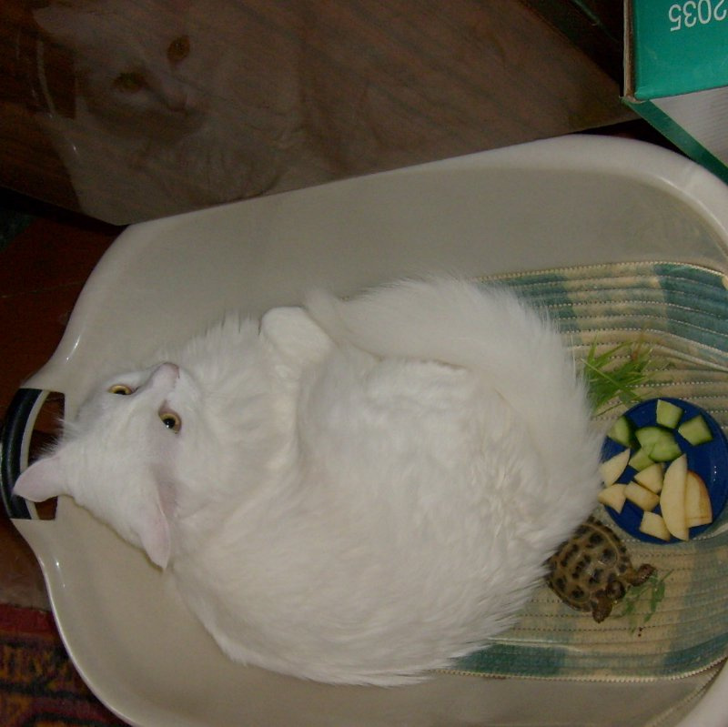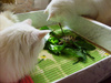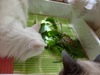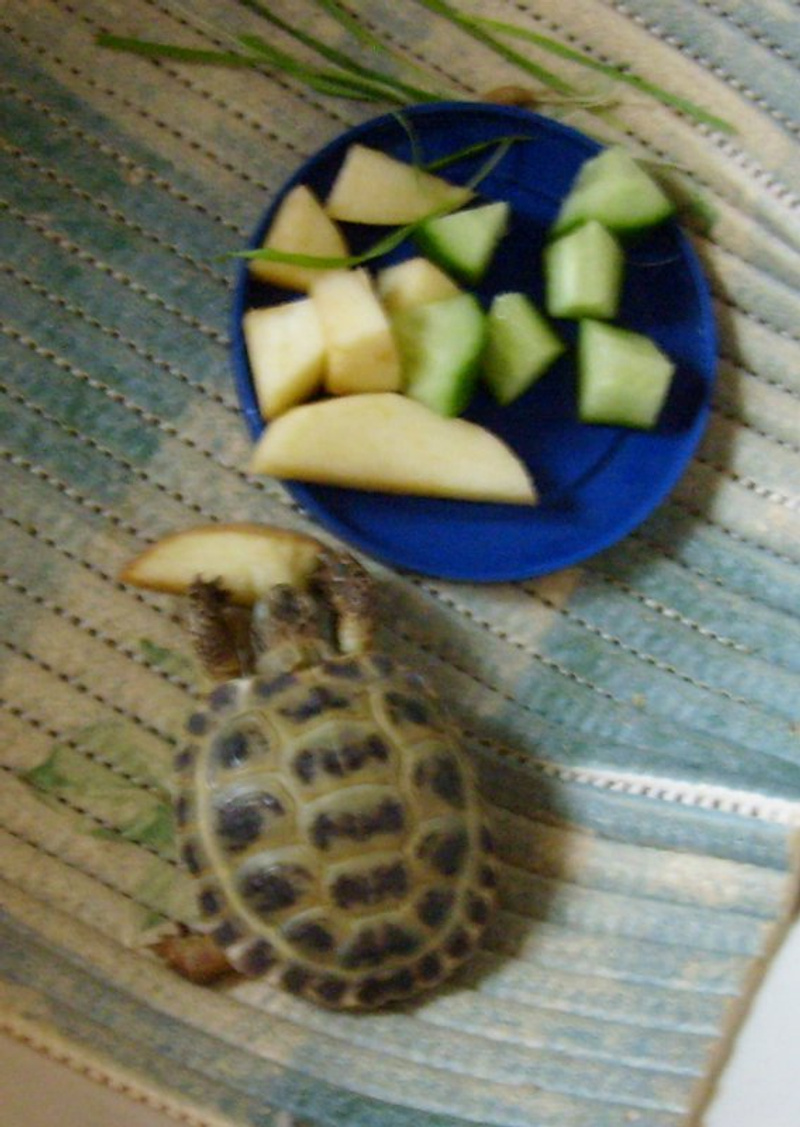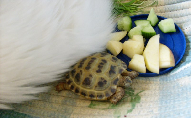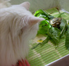 Сегодня ещё банан, грушу купила, и салат. Как Чапик учуял салат! Как ломанётся!!!